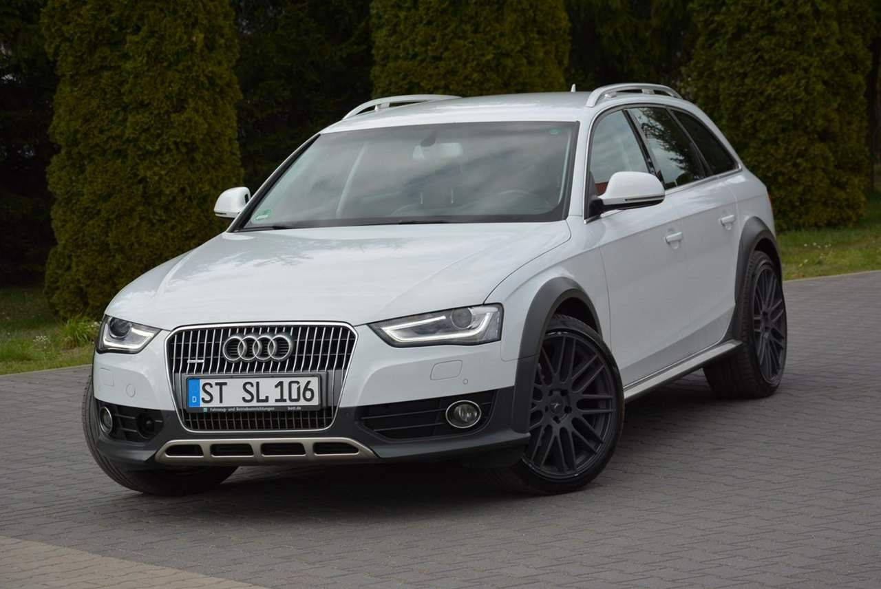 Adres komisu: 07-300 Ostrów Mazowiecka ul.Małkińska 168 tel: 668 527 900 I-Rejestracja: 15/01/2016r- Rok produkcji 12/2015r Oferuję do sprzedania sprowadzoną z Niemiec Audi A4 Allroad w manualnej skrzyni biegów w europejskiej wersji(nie USA) po liftingu w bogatej opcji wyposażenia podwójnym Auto jest w idealnym stanie technicznym jak i wizualnym.Lakier nieporysowany, bez dołków . Środek czysty , zadbany. Audi regularnie serwisowana(książka serwisowa+ faktury+ tuv do wglądu) WYPOSAŻENIE: • Napęd Quattro 4x4 • el.hak holowniczy • Nagłośnienie Bang&Olufsen • Bi-xenony+spryskiwacze reflektorów • Kamera cofania • el.tylna klapa bagażnika • Klimatronic dwustrefowy+Klimatyzacja z tyłu dla pasażerów • Lampy tylne ledowe • Radar zderzeniowy ACC • Duża kolorowa nawigacja MMI • Tempomat adaptacyjny • Czarna skórzana tapicerka+ alcantara • Martwe pole • Światła LED do jazdy dziennej • Kierownica multifunkcyjna • Skórzana gałka zmiany biegów • Oryginalne alufelgi Audi 20" z idealnymi oponami letnimi • Parktronic tył i przód • Podgrzewane fotele przód • Kontrola trakcji • Pakiet chrom+relingi achowe w chromie • Klimatyzowane schowki • Fotele komforty • Czujnik zmierzchu i deszczu • Bluetooth • El. składane lusterka • Pełny komputer pokładowy • 11x AirBag • ABS • ESP • Centralny zamek • Podgrzewane Lusterka • Immobiliser • Alarm Jeśli oglądasz to ogłoszenie na OLX - to widzisz 8 zdjęć, aby zobaczyć więcej, wystarczy kliknąć odnośnik do Otomoto. Współpracujemy z liderami w branży finansowej dającą profesjonalną obsługę finansową w postaci Kredytu Samochodowego oraz Leasingu. Współpraca: Getin Bank, Santander Bank, Paribas Fortis, BNP. Decyzja o zdolności kredytowej zostaje podjęta do 1h. Mozliwość zakupu gwarancji od 1 do 12 miesięcy Get Help Zakres GWARANCJI GetHelp: • całodobowa obsługa - przez aplikację mobilną iHelp oraz infolinię Help Center, • bezpłatny assisatnce na terenie całej Polski, • bezgotówkowe naprawy w sieci warsztatów współpracujących, • pokrycie kosztów zakupu części i robocizny, • samochód zastępczy na czas naprawy, • kompleksowa obsługa przez dedykowanego konsultanta, • szybki proces likwidacji usterki, • dodatkowe zniżki na roczną polisę OC / AC, • szeroki zakres pakietów gwarancji obejmujących: - silnik, - osprzęt silnika (m.in. turbosprężarka, rozrusznik), - skrzynia biegów, - koło dwumasowe, - układ chłodzenia, - układ hamulcowy, - układ kierowniczy, - układ napędowy, - układ klimatyzacji, - układ wydechowy (m.in. EGR, DPF), - układ paliwowy (m.in. wtryskiwacze) Niniejsze ogłoszenie jest wyłącznie informacją handlową i nie stanowi oferty w myśl art.66, § 1. Kodeksu Cywilnego. Sprzedający nie odpowiada za ewentualne błędy lub nieaktualność ogłoszenia. Numer oferty: TKN18HXJP i00586882089i