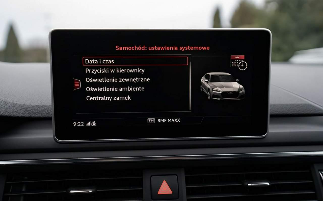 <i>AUDI A5 3.0 TDI QUATTRO 218 KM</i> <i>WERSJA S-LINE</i> <i>✔️ Auto bezwypadkowe</i> <i>✔️ Samochód serwisowany w ASO</i> <i>Gwarancja GetHelp to:</i> <i>• Najlepiej oceniana firma gwarancyjna w Polsce</i> <i>• Najszybszy proces obsługi Klientów i likwidacji awarii</i> <i>• Największa sieć ponad 1500 współpracujących warsztatów</i> <i>• Indywidualny konsultant dostępny 24/7 przez 365 dni w rok</i> <i>Wybierz samochód z Gwarancją GetHelp , którą poleca 98% Klientów i zyskaj:</i> <i>• Całodobową obsługę 24 godziny na dobę</i> <i>• Spokój dzięki szybkiemu holowaniu do warsztatu</i> <i>• Bezpieczeństwo finansowe dzięki darmowym naprawom</i> <i>• Wygodę, którą zapewnia samochód zastępczy na czas naprawy</i> <i>Zajmujemy się kompleksową obsługą klienta. Wszystkie formalności załatwiane są na miejscu i w jednym dniu.</i> <i>➟ ‼️ Auto objęte pisemną Gwarancją na okres 12 miesięcy ‼️</i> <i>Do każdego zakupionego u nas samochodu otrzymujesz ZA DARMO 12 miesięczną Gwarancję GetHelp, którą mogą być objęte następujące elementy:</i> <i>• Aplikacja mobilna iHelp® - (umożliwiająca całodobowe zgłaszanie awarii 24/7, również w dni wolne)</i> <i>• Szybkie naprawy na drodze - (usterek możliwych do usunięcia w warunkach poza warsztatowych)</i> <i>• Holowanie do warsztatu - (do jednego z ponad 1500 współpracujących warsztatów w całej Polsce)</i> <i>• Naprawy warsztatowe - (pokrycie kosztów diagnozy, zakupu niezbędnych części oraz robocizny)</i> <i>• Silnik (diesel, benzyna, LPG) - (wewnętrzne uszkodzenia silnika np. tłoki, zawory, głowica silnika)</i> <i>• Automatyczna skrzynia biegów - (wszystkie skrzynie automatyczne i półautomatyczne np. DSG)</i> <i>• Manualna skrzynia biegów - (elementy wewnętrzne skrzyni biegów np. koła zębate, wybieraki)</i> <i>• Komputer główny silnika - (usterki elektroniczne jednostki sterującej z programowaniem)</i> <i>• Dyferencjał - (tzw. mechanizm różnicowy wraz z kołami zębatymi oraz łożyskowaniem)</i> <i>• Układ hamulcowy - (bez elementów eksploatacyjnych np. klocków hamulcowych)</i> <i>• Układ chłodzenia - (m.in. chłodnica płynu chłodzącego, wentylator, termostat)</i> <i>• Wał napędowy - (z korpusem, podporą i łożyskiem podporowym)</i> <i>• Most napędowy - (z obudową mostu oraz przekładnią główną)</i> <i>• Turbosprężarka – (wraz z zaworami i nastawnikami turbiny)</i> <i>• Koło zamachowe dwumasowe - (z wieńcem zębatym)</i> <i>• Pompa paliwa - (pompy rotacyjne, wirnikowe, elektryczne)</i> <i>• Półoś napędowa - (półoś z piastą koła, przegubem i łożyskiem)</i> <i>• Układ zapłonowy - (świece, aparat i cewki zapłonowe, stacyjka)</i> <i>• Rozrusznik i alternator - (wewnętrzne uszkodzenia wraz z obudową)</i> <i>• Kolumna kierownicza - (łącznie z wałem z przegubem krzyżakowym)</i> <i>• Przekładnia kierownicza - (maglownicą z wałkami, łożyskami i obudową)</i> <i>• Wspomaganie kierownicy - (z pompą wspomagania, przekładnią i kolumną)</i> <i>• Zawór recyrkulacji spalin EGR - (wewnętrzne uszkodzenia wraz z czujnikiem NOx)</i> <i>• Filtr cząstek stałych DPF/GPF/FAP - (wraz z katalizatorem, obudową i rdzeniem filtra)</i> <i>• Samochód zastępczy - (dostępny w 73 punktach w całej Polsce, lokalizacje dostępne na stronie www)</i> <i>Wszystkie formalności załatwiane są na miejscu i w jednym dniu.</i> <i>➟ Wszystkie formalności kredytowe i leasingowe załatwiamy w jednym dniu</i> <i>Kontakt tel. 504717705 (Ariel Jabłoński)</i> <i>Posiadam duży, dobrze oświetlony garaż do prezentacji aut, co ułatwi klientowi podjęcie decyzji o zakupie bez względu na porę dnia i panujące warunki atmosferyczne</i> <i>.WYPOSAŻENIE:</i> <i>• PRZEDNIE LAMPY FULL LED</i> <i>• LED DO JAZDY DZIENNEJ</i> •<i> HUD - WYŚWIETLACZ PRZEZIERNY</i> •<i> ZMIENNE TRYBY JAZDY</i> •<i> RADARY</i> <i>• ŚWIATŁA PRZECIWMGŁOWE W TECHNOLOGII LED</i> <i>• TEMPOMAT AKTYWNY</i> •<i> RADARY</i> <i>• NAGŁOŚNIENIE MULTIMEDIALNE BANG & OLUFSEN</i> <i>• LICZNIK TECHNOLOGII LCD</i> <i>• NAWIGACJA MMI 3D</i> <i>• POŁĄCZENIE Z INTERNETEM</i> <i>• PODŁOKIETNIK PRZEDNI</i> <i>• KLIMATRONIK TRZYSTREFOWY</i> <i>• KLIMATYZOWANY SCHOWEK</i> <i>• SZYBY FOTO CHROMATYCZNE</i> <i>• TYLNE LAMPY W TECHNOLOGI LED</i> <i>• BEZKLUCZYKOWE ODPALANIE SAMOCHODU</i> <i>• CZUJNIKI PARKOWANIA PRZEDNIE</i> <i>• CZUJNIKI PARKOWANIA TYŁ</i> <i>• ALUMINIOWE FELGI 19"(OPONY LETNIE+ ZIMOWE)</i> <i>• ELEKTRYCZNIE OTWIERANA TYLNA KLAPA BAGAŻNIKA</i> <i>• SKÓRZANA WIELOFUNKCYJNA KIEROWNICA S-Line</i> <i>• SKÓRZANA TAPICERKA + ALCANTARA S-Line</i> • <i>CZARNA PODSUFITKA</i> <i>• PODUSZKI POWIETRZNE</i> <i>• KOMPUTER POKŁADOWY</i> <i>• PODŁOKIETNIK</i> <i>• WSPOMAGANIE</i> <i>• CENTRALNY ZAMEK</i> <i>• FOTOCHROMATYCZNE LUSTERKO WEWNĘTRZNE</i> <i>• FOTOCHROMATYCZNE LUSTERKA ZEWNĘTRZNE</i> <i>• ABS</i> <i>• ESP</i> <i>• Sensor Deszczu</i> <i>• Czujnik Zmierzchu</i> <i>• Cztery Elektryczne Szyby</i> <i>• Elektrycznie Zamykane Lusterka</i> •<i> Foto chromatyczne Lusterka</i> <i>• Podgrzewane Lusterka</i> <i>• Doświetlanie Zakrętu</i> <i>• Kupujący zwolniony z opłaty skarbowej 2%</i> <i>• Faktura Vat- MARŻA</i> <i>Nabywca udaje się tylko do Wydziału Komunikacji w celu rejestracji pojazdu.</i> <i>✋ Możliwość umówienia wizyty online</i> <i>Zapraszam do kontaktu:+ 48 698-250-464</i> <i>"Informujemy, że zamieszczane w ofercie zdjęcia samochodów podlegają ochronie w rozumieniu ustawy o prawach autorskich i prawach pokrewnych oraz są zaliczane do utworów fotograficznych. Kopiowanie, powielanie tych zdjęć jest zabronione, zaś brak zastosowania się do zakazu spowoduje pociągnięcie osoby dokonującej takich naruszeń do odpowiedzialności prawnej."</i> Numer oferty: AKL18HCR3 i00586702315i
