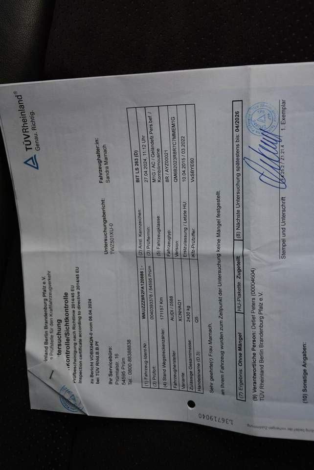 Adres komisu: 07-300 Ostrów Mazowiecka ul.Małkińska 168 tel : 668 527 900 AUDI Q5 2.0TDI 190KM Quattro (Euro 6) Oryginalny S-line+ Pakiet Offroad Rok produkcji: 04.2015r Oferuję do sprzedania świeżo sprowadzoną z Niemiec Audi Q5 2.0TDI 190KM poliftingu w najbogatszej konfiguracji S-LINE+Pakiet Offroad. Auto jest w idealnym stanie zarówno wizualnym jak i technicznym. Lakier , lśniący , bez dołków. Środek czyściutki zadbany, niepalone. Nowe opony letnie 20" DOT :2025R WYPOSAŻENIE: • Napęd quattro 4x4 • Pakiet styllistyczny S-line • Pakiet Offroad(nakładki na błotniki, osłony) • Klimatronic dwustrefowy • Keyless go • Bi-xenony+spryskiwacze reflektorów • Światła LED do jazdy dziennej • Światła tylne LED • Odpinany hak holowniczy • Nagłośnienie Bang&Olufsen • Oryginalna multifunkcyjna kierownica S-line • Panorama dach • Czarna podsufitka S-line • Podgrzewane fotele przednie • Grawerki na fotelach S-Line • Listwy na błotnikach S-Line • Oryginalne alufelgi Audi 20" z nowymi oponami letnimi DOT 2025 • Czarna skórzana tapicerka S-line z alcantarą • listwy wewnętrzne S-line • Zderzak przedni S-line • Zderzak tylny S-line • Tylny dyfuzor • Kratki plaster miodu S-Line • Pakiet chrom, relingi listwy w chromie • kontrola trakcji • Duża kolorowa nawigacja MMI • Czujnik zmierzchu i deszczu • Oryginalnie przyciemniane tylne szyby • Bluetooth • Pełny komputer pokładowy • Siedzenia Isofix • 11x AirBag • ABS • 4El.Szyby • El.Lusterka • Tempomat • Kolorowy komputer • Podgrzewane lusterka • Centralny Zamek • Immobiliser • Alarm • Książka serwisowa+tuv niemiecki • 2xkomplet kluczy Jeśli oglądasz to ogłoszenie na OLX - to widzisz 8 zdjęć, aby zobaczyć więcej, wystarczy kliknąć odnośnik do Otomoto. Współpracujemy z liderami w branży finansowej dającą profesjonalną obsługę finansową w postaci Kredytu Samochodowego oraz Leasingu. Współpraca: Getin Bank, Santander Bank, Paribas Fortis, BNP. Decyzja o zdolności kredytowej zostaje podjęta do 1h. KONTAKT W SPRAWIE KREDYTU TEL.601806909 -Piotr Soliwoda Mozliwość zakupu gwarancji od 1 do 12 miesięcy Get Help Zakres GWARANCJI GetHelp: • całodobowa obsługa - przez aplikację mobilną iHelp oraz infolinię Help Center, • bezpłatny assisatnce na terenie całej Polski, • bezgotówkowe naprawy w sieci warsztatów współpracujących, • pokrycie kosztów zakupu części i robocizny, • samochód zastępczy na czas naprawy, • kompleksowa obsługa przez dedykowanego konsultanta, • szybki proces likwidacji usterki, • dodatkowe zniżki na roczną polisę OC / AC, • szeroki zakres pakietów gwarancji obejmujących: - silnik, - osprzęt silnika (m.in. turbosprężarka, rozrusznik), - skrzynia biegów, - koło dwumasowe, - układ chłodzenia, - układ hamulcowy, - układ kierowniczy, - układ napędowy, - układ klimatyzacji, - układ wydechowy (m.in. EGR, DPF), - układ paliwowy (m.in. wtryskiwacze) Niniejsze ogłoszenie jest wyłącznie informacją handlową i nie stanowi oferty w myśl art.66, § 1. Kodeksu Cywilnego. Sprzedający nie odpowiada za ewentualne błędy lub nieaktualność ogłoszenia. Numer oferty: TKN18HWK3 i00586869693i