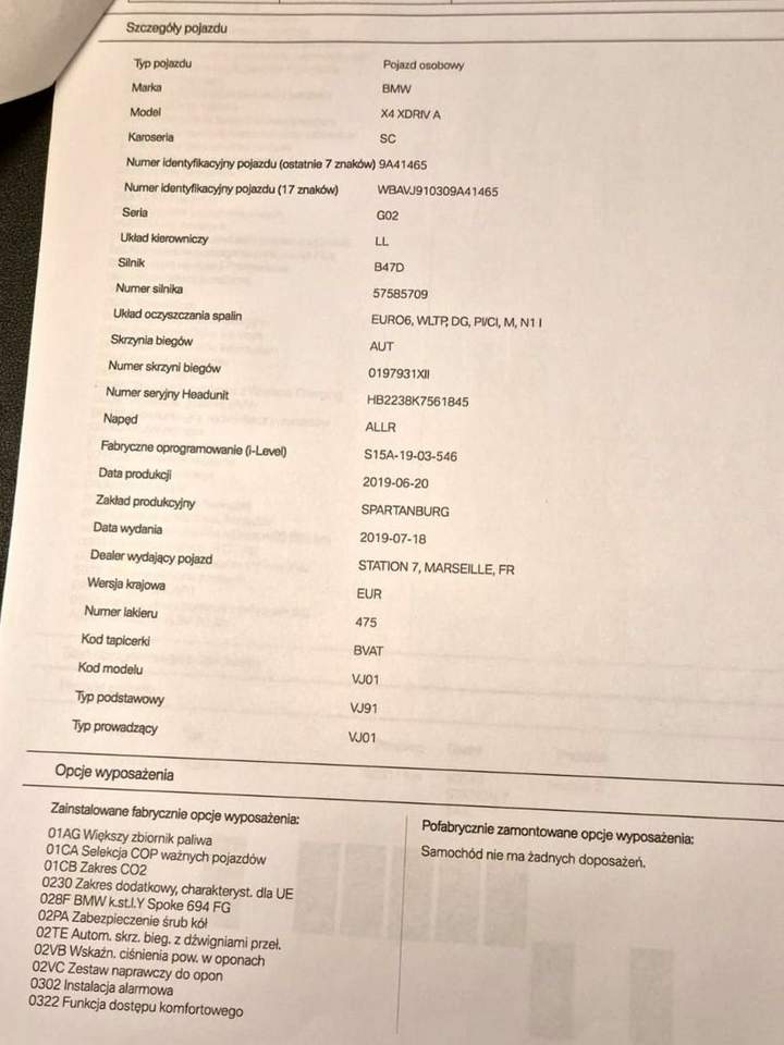 BMW X 4 2,0 D 190 KM x-DRIVE ROK PRODUKCJI - 2020. SKRZYNIA BIEGÓW AUTOMATYCZNA . NR.VIN - WBAVJ910309A41465. BOGATA WERSJA WYPOSAŻENIA - X line Możliwość obejrzenia samochodu w miejscowości Kotlin 63-220 po wcześniejszym kontakcie telefonicznym pod nr 602 644 297 Numer oferty: AKL18FP37 i00586292473i