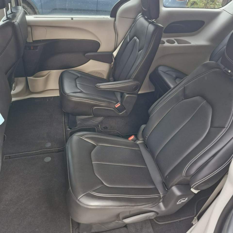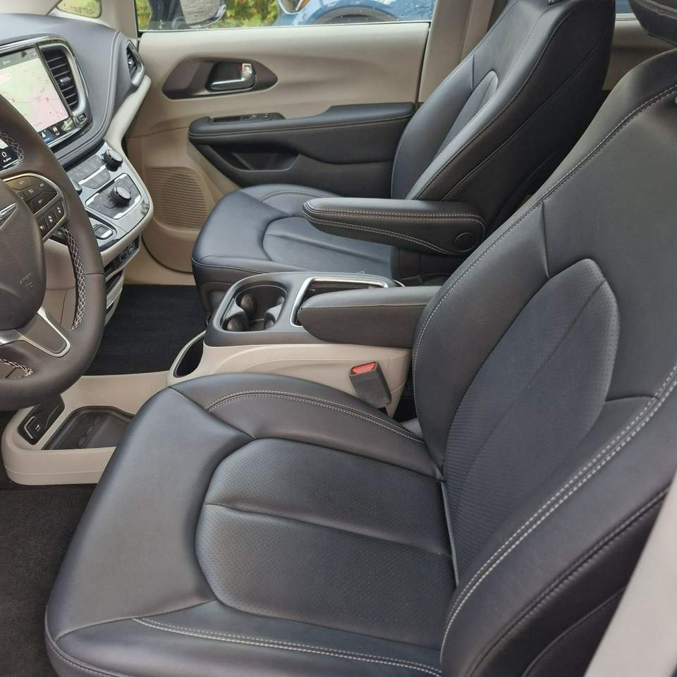 Chrysler Pacifica Touring L – 2024 r. Przebieg: 13 414 km Silnik: 3.6L V6 24V VVT z systemem Start/Stop (287 KM / 211 kW) Skrzynia: Automatyczna, 9-biegowa Napęd: Na przednie koła (FWD) Kolor: Silver Mist Clear–Coat (srebrny metalik) Wnętrze: Czarna tapicerka Caprice Leatherette / Black Alloy Wyposażenie: Bezpieczeństwo i systemy wspomagające: Adaptive Cruise Control z funkcją Stop & Go (aktywny tempomat) Lane Departure Warning Plus – asystent utrzymania pasa ruchu Full-Speed Forward Collision Warning Plus – system ostrzegania o kolizji z automatycznym hamowaniem Pedestrian Emergency Braking – wykrywanie pieszych z automatycznym hamowaniem Blind Spot Monitoring + Rear Cross Path Detection – monitoring martwego pola i ruchu poprzecznego Advanced Brake Assist – system wspomagania hamowania awaryjnego ParkView® – kamera cofania o wysokiej rozdzielczości ParkSense® – czujniki parkowania tył z funkcją zatrzymania Safety Sphere Package: kamera 360° Surround View + czujniki przód i tył + system Park Assist (równoległy i prostopadły z automatycznym zatrzymaniem) Rain Sensitive Wipers – czujnik deszczu System LATCH do mocowania fotelików dziecięcych Rear Seat Reminder Alert – przypomnienie o pasażerach na tylnych siedzeniach 8 poduszek powietrznych (wielostopniowe czołowe, boczne, kurtynowe, kolanowa kierowcy) Sentry Key® Theft Deterrent System – zabezpieczenie antykradzieżowe Keyless Enter-N-Go™ – bezkluczykowy dostęp i uruchamianie Hill Start Assist – asystent ruszania pod górę Komfort i wnętrze: 2. i 3. rząd siedzeń Stow ’n Go® – chowane w podłogę z funkcją Easy Tilt Skórzana tapicerka Caprice Leatherette Fotele przednie podgrzewane Podgrzewana kierownica skórzana, wielofunkcyjna Fotel kierowcy elektrycznie regulowany w 8 kierunkach z pamięcią ustawień Schowek środkowy z pokrywą Trzystrefowa automatyczna klimatyzacja (3-Zone Auto Temp Control) Uconnect® 5 z ekranem 10.1” (najnowszy system multimedialny) Apple CarPlay® / Android Auto™ Radio satelitarne SiriusXM® (3-miesięczny okres próbny) Bluetooth® – telefon i audio System nagłośnienia z 6 głośnikami Gniazda USB i 12V w pierwszym i drugim rzędzie Wysokiej jakości materiały wykończenia wnętrza Wygląd i elementy zewnętrzne: 18” felgi aluminiowe Opony całoroczne 235/65R17 BSW All-Season Reflektory Bi-Function LED Projector Headlamps Światła przeciwmgielne LED (Front LED Fog Lamps) LED-owe światła tylne Automatyczne reflektory Power Liftgate – elektrycznie sterowana klapa bagażnika Power Sliding Doors – elektrycznie sterowane drzwi boczne Lusterka boczne lakierowane na czarno (Gloss-Black), z kierunkowskazami i podgrzewaniem Lusterka boczne z pamięcią ustawień i funkcją składania Lakier Silver Mist Clear–Coat (metalizowany, dopłata $195) Ciekawostki o modelu Chrysler Pacifica Touring L: Model 2024 to najnowsza generacja amerykańskiego minivana klasy premium – jeszcze lepiej wyciszona i bogatsza w systemy bezpieczeństwa. Wersja Touring L łączy luksusowy komfort z funkcjonalnością – idealna dla rodzin i osób ceniących przestrzeń oraz nowoczesne technologie. System Stow ’n Go® pozwala w kilka sekund całkowicie schować siedzenia drugiego i trzeciego rzędu w podłogę – uzyskując idealnie płaską przestrzeń bagażową. Wersja 2024 korzysta z nowego systemu multimedialnego Uconnect® 5 – z ekranem 10,1”, szybszym procesorem i obsługą OTA (aktualizacje online). Chrysler Pacifica Touring L zdobyła najwyższe noty bezpieczeństwa NHTSA (5/5 gwiazdek) Spalanie wg EPA: 22 MPG (ok. 10,7 l/100 km) – miasto 19, trasa 28 MPG Chrysler Pacifica Touring L 3.6 V6 – nowoczesny, przestronny i bogato wyposażony minivan klasy premium, idealny dla rodzin. Łączy komfort podróży z bezpieczeństwem i technologią – to luksus, który naprawdę można poczuć każdego dnia. Numer oferty: AKL18F89A i00586138383i
