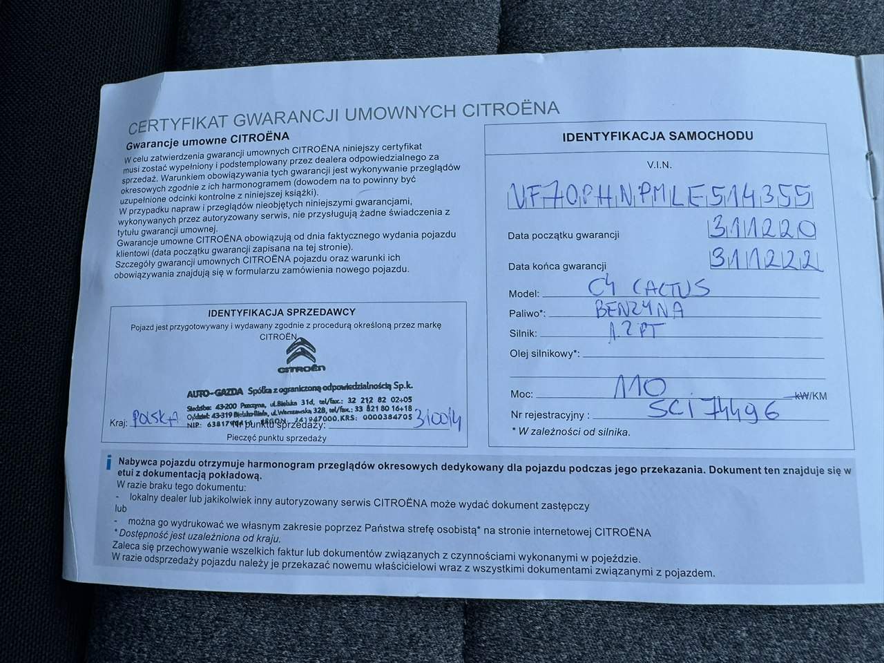 Citroen C4 Cactus Samochód z polskiego salonu od pierwszego właściciela! Regularnie serwisowany w ASO Citroen, rok temu wymieniony rozrząd! Możliwość wykupu rocznej gwarancji na podzespoły mechaniczne od firmy GetHelp. Możliwość sprawdzenia pojazdu na stacji diagnostycznej lub w autoryzowanym serwisie – na życzenie i koszt kupującego. Oferujemy również transport zakupionego pojazdu pod wskazany adres. Faktura VAT-marża – kupujący zwolniony z opłaty skarbowej 2%. Dostępna opcja finansowania – kredyt lub leasing. Decyzja kredytowa nawet w 2 godziny. Kontakt do doradcy: Tomasz Puczek – msleasing, tel. 451 233 605 Najważniejsze wyposażenie: - Klimatyzacja automatyczna - AndroidAuto - CarPlay - Elektryczne szyby przednie - Elektrycznie sterowane lusterka - Elektrycznie składane lusterka - 6 biegowa skrzynia biegów - Czujniki parkowania tył - Pełnowymiarowe koło zapasowe - Drugi komplet opon letnich marki Michelin Niniejsze ogłoszenie jest wyłącznie informacją handlową i nie stanowi oferty w myśl art. 66, §1 Kodeksu Cywilnego. Sprzedający nie odpowiada za ewentualne błędy lub nieaktualność ogłoszeń. i00586206921i