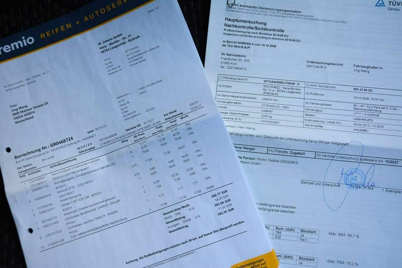 Citroen C4-Grand Picasso z Niemiec 1.6 HDI 110 KM Przebieg tylko 239 tyś. km. Auto do samego końca serwisowane. Ostatnia faktura z dnia 16.10.2025 przy przebiegu 236 tyś. km. wykonany został serwis olejowy oraz wymienione tarcze hamulcowe i klocki na przedniej osi. (widoczne na zdjęciach) Dla zainteresowanych zakupem udostępniamy nr vin!!! WYPOSAŻENIE: *Ledy do jazdy dziennej *Automatyczna skrzynia biegów *Łopatki F1 *Dyfuzor zapachowy *Lodówka na napoje *7-foteli *Roletki dla dzieci na tylne szyby *Siedzenia isofix *Nawiewy z tyłu *Klimatronic dwustrefowy *Parktronic tył *Podgrzewane fotele przód *Oryginalne alufelgi 16" Citroen z idealnymi oponami zimowymi *Tempomat *Kierownica skórzana multimedialna *Oryginalne Radio cd *ABS *ESP *Roleta bagażnika 2xkomplet kluczy Zakup door to door Oferujemy zakup auta bez wychodzenia z domu. Wystarczy skontaktować się z nami, my odpowiemy na wszystkie pytania, nagramy film video. Możliwe oględziny auta na miejscu u klienta - o szczegóły zapytaj sprzedawcę. Możliwy transport auta po zakupie. Jeśli oglądasz to ogłoszenie na OLX - to widzisz 8 zdjęć, aby zobaczyć więcej, wystarczy kliknąć odnośnik do Otomoto. Współpracujemy z liderami w branży finansowej dającą profesjonalną obsługę finansową w postaci Kredytu Samochodowego oraz Leasingu. Współpraca: Getin Bank, Santander Bank, Paribas Fortis, BNP. Decyzja o zdolności kredytowej zostaje podjęta do 1h. Mozliwość zakupu gwarancji od 1 do 12 miesięcy Get Help Zakres GWARANCJI GetHelp: • całodobowa obsługa - przez aplikację mobilną iHelp oraz infolinię Help Center, • bezpłatny assisatnce na terenie całej Polski, • bezgotówkowe naprawy w sieci warsztatów współpracujących, • pokrycie kosztów zakupu części i robocizny, • samochód zastępczy na czas naprawy, • kompleksowa obsługa przez dedykowanego konsultanta, • szybki proces likwidacji usterki, • dodatkowe zniżki na roczną polisę OC / AC, • szeroki zakres pakietów gwarancji obejmujących: - silnik, - osprzęt silnika (m.in. turbosprężarka, rozrusznik), - skrzynia biegów, - koło dwumasowe, - układ chłodzenia, - układ hamulcowy, - układ kierowniczy, - układ napędowy, - układ klimatyzacji, - układ wydechowy (m.in. EGR, DPF), - układ paliwowy (m.in. wtryskiwacze) Niniejsze ogłoszenie jest wyłącznie informacją handlową i nie stanowi oferty w myśl art.66, § 1. Kodeksu Cywilnego. Sprzedający nie odpowiada za ewentualne błędy lub nieaktualność ogłoszenia. Numer oferty: TKN18GDN5 i00586459078i