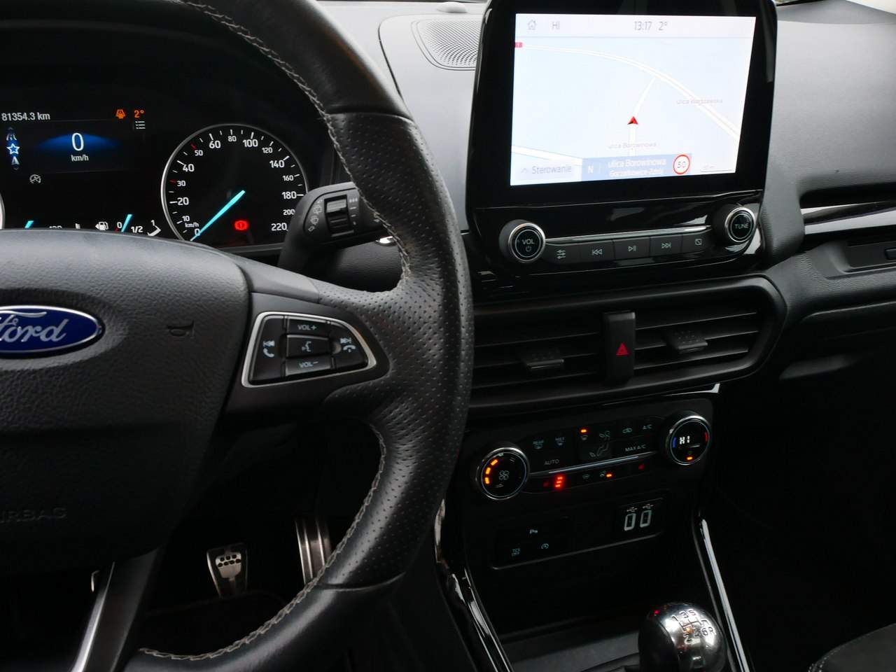 xxxxxxx DODATKOWE WYPOSAŻENIE: - Wersja wyposażenia: ST-Line - Alufelgi 16 cali fabryczne (zimowe) - Pakiet zimowy - ABS - ESP - Stabilizacja jazdy - ASR - Kontrola trakcji - Tempomat - Limiter prędkości - Start And Stop z możliwością wyłączenia - Czujniki ciśnienia opon - Hillholder - wspomaganie ruszania pod wzniesienia - Parktronic przód i tył - Klimatyzacja automatyczna - Skórzana tapicerka +alcantara - Podgrzewane fotele - Reg. kierownicy - Podgrzewana kierownica - Skórzana kierownica - Wspomaganie kierownicy - Multifunkcyjna kierownica - 7 x Poduszka powietrzna (łącznie z kolanową) - 4 x Elektryczne szyby - Podgrzewana przednia szyba - Przyciemniane szyby - Elektryczne lusterka - Składane elektrycznie lusterka - Fotochromatyczne lusterko - Sensor deszczu - Central zamek sterowany pilotem - Komputer - Kamera cofania - Sterowanie głosowe multimediami po polsku - Nawigacja fabryczna z mapami na Polskę i Europę - Radio CD (!) MP3 USB AUX fabryczne - Bluetooth fabryczny - Halogeny przeciwmgielne - Sensor świateł - Światła jazdy dziennej LED fabryczne - Immobiliser - Isofixy - Hak - Komplet oryginalnych kluczy - Pełna dokumentacja fabryczna. xxxxx HISTORIA SAMOCHODU: - Zarejestrowany w kraju od 07 2025 - Sprowadzony z Niemiec osobiście przez obecnego właściciela - 1 Właściciel w kraju - Udokumentowano przeglądy serwisowe w Niemczech do 07 2024 przy stanie 66 tys km - Przebieg w kraju udokumentowano niezależnie badaniem technicznym - Całkowicie udokumentowany przebieg - Olej silnika wymieniono 10 2025 / 78 tys km - Czyste, znakomicie zadbane wnętrze - Bardzo dobrze utrzymany lakier - Możliwość wszechstronnego sprawdzenia samochodu w dowolnym serwisie - Komplet oryginalnych kluczy - Pełna dokumentacja fabryczna - Zgrabny, wygodny i dynamiczny samochód o znakomitej prezencji. xxxxxx INFORMACJE DODATKOWE: - Na samochód wystawiona będzie umowa kupna-sprzedaży - Przy zakupie należy uwzględnić koszt opłaty skarbowej 2% (PCC) - Przed przyjazdem bardzo proszę zadzwonić - Ogłoszenie to nie stanowi OFERTY w myśl przepisów kodeksu cywilnego - Prosimy o informację, jeśli znajdziesz błąd w ogłoszeniu - Zapraszamy na jazdę próbną tym Fordem Ecosportem 1.0 Ecoboost 125KM ST-Line - Autokomis Soloch działa na rynku nieprzerwanie od: 1990 roku. xxxxxx MOŻLIWOŚĆ ZAKUPU NA KREDYT / LEASING: - Darmowa symulacja raty - Darmowe sprawdzanie zdolności - Kilka banków do dyspozycji - Możliwość kredytu bez BIK i KRD (dla wybranych modeli) - Wszystkie formalności na miejscu lub pocztowo i online - Najdogodniejsze warunki kredytu samochodowego. xxxxxx PREZENTACJA - FILM WIDEO 1080 FULL HD: Możliwość wideoprezentacji na żywo przez komunikator (Whatsapp, Messenger, Skype, Youtube, Facebook) Na sesję bardzo proszę umówić się telefonicznie. xxxx KONTAKT: Strona oficjalna: Soloch.pl Profil na FB - Facebook.com/autokomis.soloch Nasz kanał na Youtube - youtube.com/AutokomisSolochGoczalkowiceZdroj Tel.: (+48) 32 210 73 84 (We Speak English) Tel. kom. (Mobile): (+48) 790 770 340 (We Speak English) Ul. Borowinowa 19 (Przy drodze krajowej nr 1 - E75) 43-230 Goczałkowice-Zdrój – Woj. Śląskie. GPS: 49.94211°N, 18.98184°E - (49°56'31.6"N, 18°58'54.6"E). xxxxxx GODZINY OTWARCIA: Pn. - Pt. : 08:00 - 17:00 Sobota: 08:00 -16:00 Niedziela: Nieczynne. xxxxxx Numer oferty: 26/037P i00586712787i