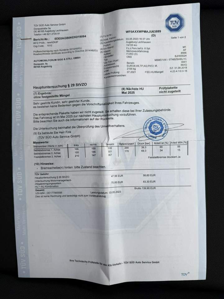 - VIN WF0AXXWPMAJU63889