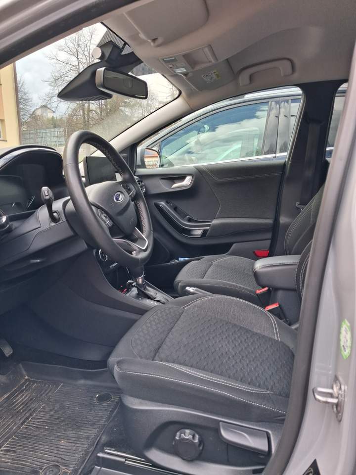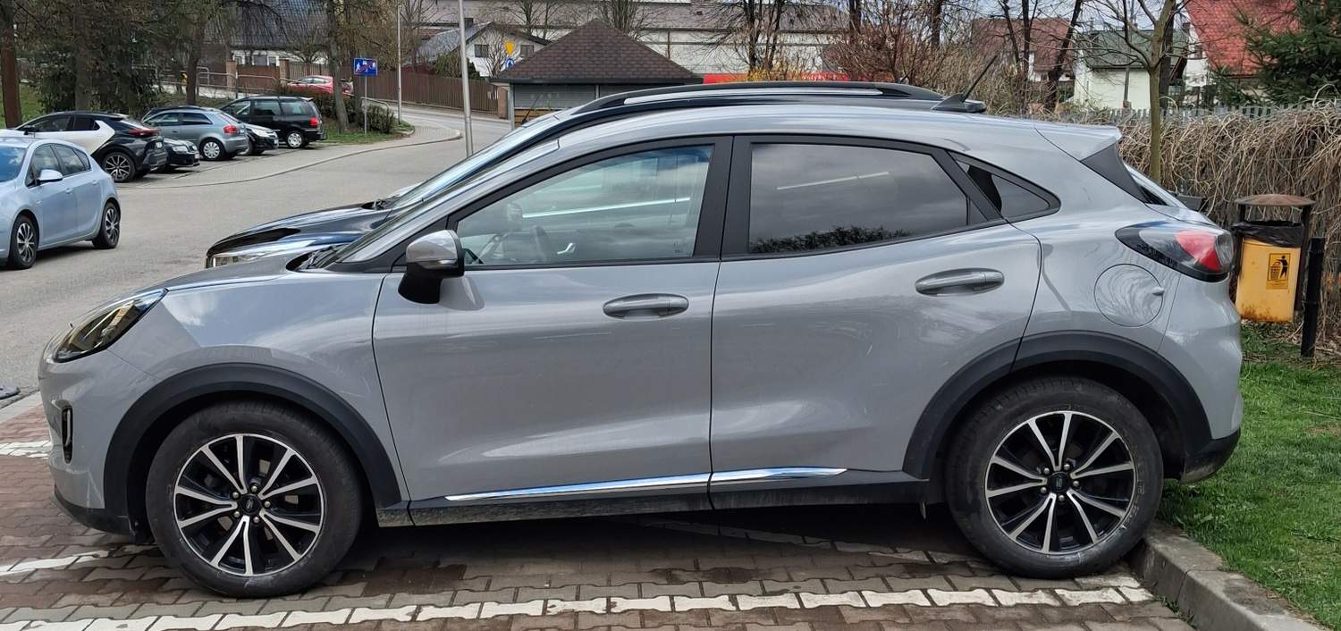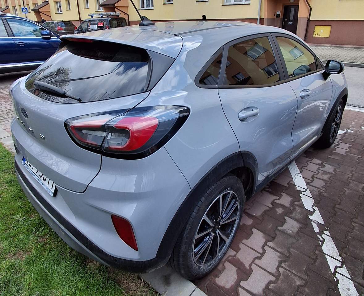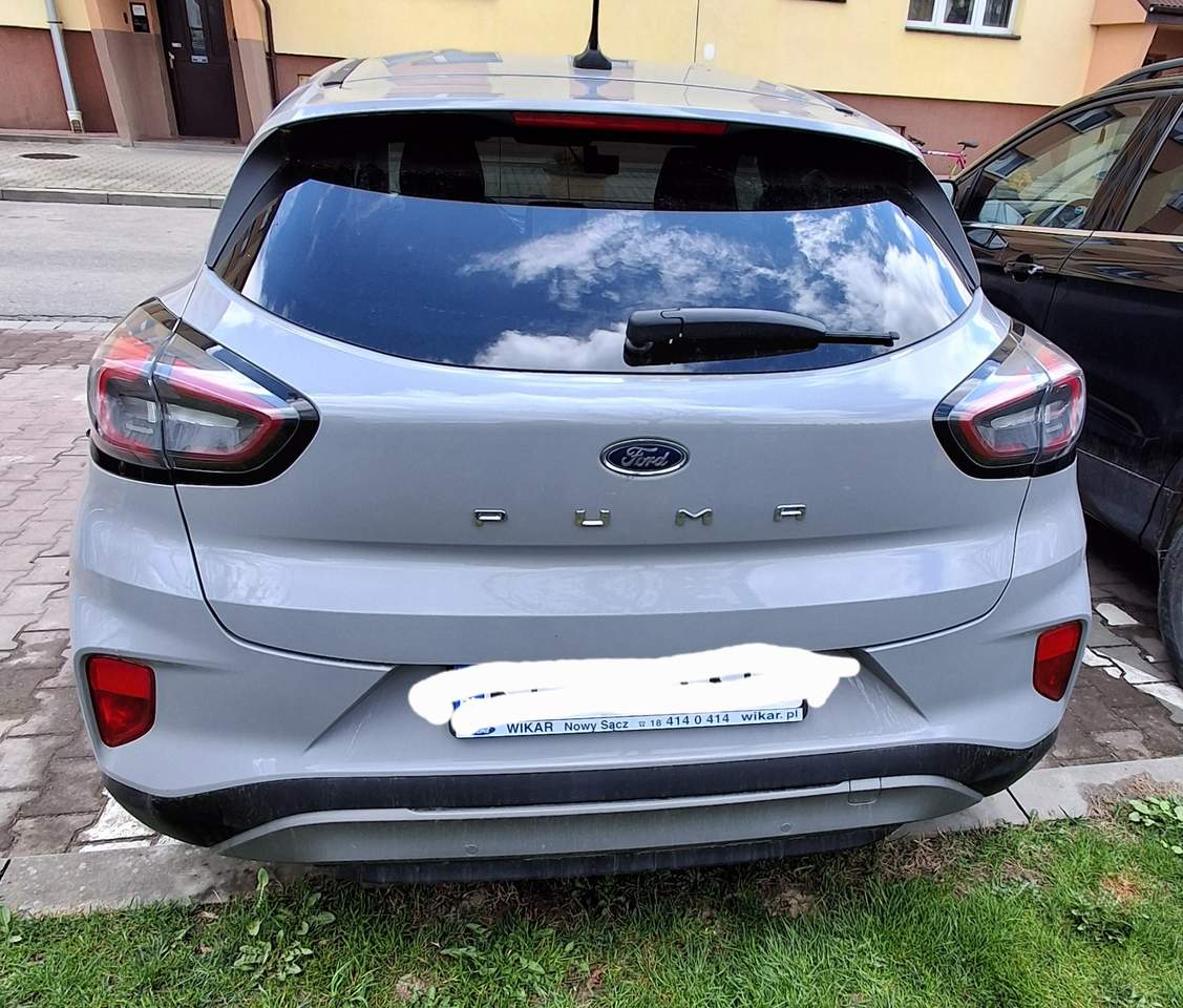 Ford Puma Wersja 1.0 EcoBoost Titanium, silnik 1.0 EcoBoost 125KM (92 kW), 6 trybów jazdy (normal, eko, sport, droga nieutwardzona, śliska nawierzchnia Skrzynia biegów automatyczna 7DCT Felgi aluminiowe 17’’ Kolor Szary Liczba drzwi 5 Rok produkcji 2020 VIN Data pierwszej rejestracji w historii pojazdu 7. 04. 2021 r Przebieg 45800 km Wyposażenie: ABS ESP TPSM Elektroniczny system rozdziału siły hamowania System wspomagania hamowania System hamowania awaryjnego dla ochrony pieszych System ostrzegający o możliwej kolizji System wykrywania zmęczenia kierowcy System minimalizujący skutki kolizji Światła awaryjnego hamowania Poduszka powietrzna kierowcy Poduszka powietrzna pasażera Kurtyny powietrzne - przód Boczne poduszki powietrzne - przód Kurtyny powietrzne - tył Isofix (punkty mocowania fotelika dziecięcego) Interfejs Bluetooth, gniazdo USB (x2), gniazdo zapalniczki, system nawigacji satelitarnej (Ford), system nagłośnienia SYNC 3, radio z systemem DAB, Aplikacja na telefonie - Ford Pass Connect (zdalne zamykanie/otwieranie, uruchomianie i lokalizacja pojazdu), hot spot Wi-Fi, ekran dotykowy. Elektroniczny system kontroli podzespołów (olej, ciśnienie opon). Klimatyzacja automatyczna, tapicerka materiałowa, kierownica skórzana ze sterowaniem radia, podgrzewana, fotele przednie podgrzewane - styl sportowy regulowane ręcznie, tylna kanapa dzielona 60:40 + trzeci zagłówek, elektryczne szyby przednie, szyba przednia z podgrzewaniem elektrycznym (odmrażanie), elektryczne szyby tylne przyciemniane, tempomat adaptacyjny, lusterka boczne ustawiane elektrycznie, podgrzewane, składane elektrycznie, kontrola zmiany pasa ruchu (Lane assist), asystent hamowania (Brake Assist), wspomaganie ruszania pod górę (Hill Holder), czujniki parkowania tył, system rozpoznawania znaków drogowych, asystent świateł drogowych, czujnik zmierzchu, czujnik deszczu, wycieraczki automatyczne, lampy tylne w technologii LED , lampy LED przeciwmgielne doświetlające zakręt, oświetlenie wnętrza LED, system Start/Stop, elektroniczna kontrola ciśnienia w oponach, wspomaganie kierownicy, Ford Mega Box – dodatkowa przestrzeń ładunkowa po podłogą bagażnika. Wszystkie systemy wymienione powyżej działają bez zarzutów. Komplet dywaników gumowych i wykładzinowych kabinowych i bagażnika.. Samochód serwisowany. Wymiany oleju co roku. Wymieniony olej w automatycznej skrzyni biegów po 30000 km. Akumulator nowy (listopad 2025). Dezynfekcja klimatyzacji co roku. Badanie techniczne ważne do 10.04.2027. Wartość auta wyliczona przez ubezpieczyciela to kwota 74617 PLN. Sprzedam za 60000 PLN (do negocjacji)