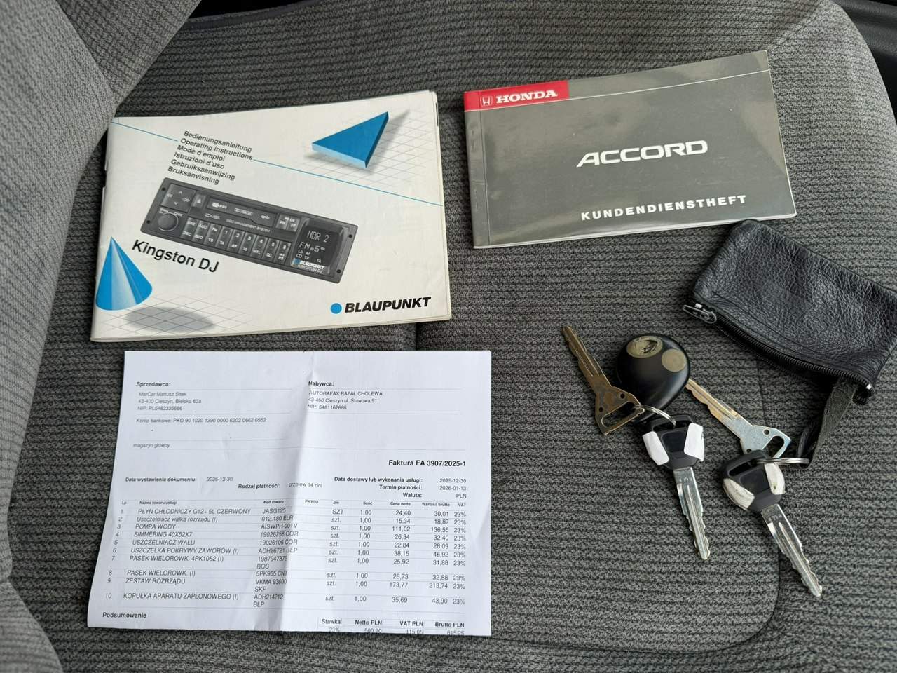 Honda Accord 2.0 Automat Świeżo wymieniony rozrząd wraz z olejem i filtrami! Faktura VAT-marża – kupujący zwolniony z opłaty skarbowej 2%. Najważniejsze wyposażenie: - skrzynia biegów automatyczna - szyberdach elektryczny - przyciemniane tylne szyby - podłokietnik przód - podłokietnik tył - dwa komplety kluczyków - książka serwisowa Niniejsze ogłoszenie jest wyłącznie informacją handlową i nie stanowi oferty w myśl art. 66, §1 Kodeksu Cywilnego. Sprzedający nie odpowiada za ewentualne błędy lub nieaktualność ogłoszeń. i00586561221i