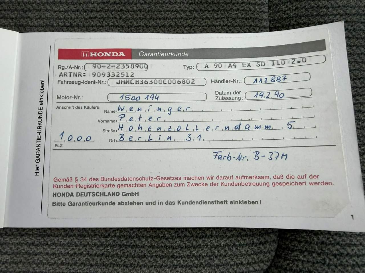 - VIN JHMCB36300C006802
