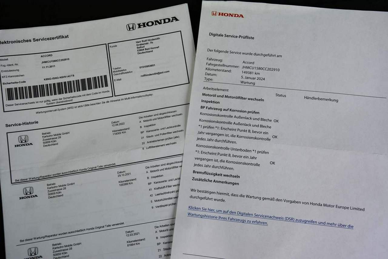 Adres Komisu: 07-300 Ostrów Mazowiecka Ul. Małkińska 168 Tel: 668-527-900 Honda Accord LIFT 2.0i Benzyna 156 KM Rok produkcji 11.2011 model 2012r. Jeden właściciel od nowości Przebieg-163tys km - Auto od początku do końca serwisowane w ASO Honda. Ostatnia wizyta serwisowa z dnia 05.01.2024 przy przebiegu 149 tyś. km (Posiadam elektroniczny wydruk z serwisu Hondy widoczny na zdjęciach). Wita. Mam do sprzedania świeżo sprowadzoną z Niemiec Hondę Accord po liftingu . Samochód miał tylko jednego właściciela od nowości - brief do wglądu. 100% bezwypadkowy . Wnętrze czyściutkie, bardzo zadbane. Lakier nieporysowany, bez dołków. Na dzień dzisiejszy kompletnie żadnego wkładu finansowego. Wyposażenie: • Klimatronik dwustrefowy • Xenony+Spryskiwacze reflektorów • Parktronik tył • Parktronik przód • Welurowa tapicerka • Podgrzewane fotele kierowcy i pasażera • El.Składane Lusterka • Tempomat • Pakiet chrom+klamki w chromie • 4xEl.Szyby • Siedzenia Isofix • Oryginalne Alu Felgi Hondy 17" z idealnymi oponami letnimi DOT 2022r. • Multifunkcyjna skórzana kierownica • Podłokietnik • ABS • El.Lusterka • Podgrzewane Lusterka • Centralny Zamek • Immobiliser • ALARM • Książka serwisowa+tuv niemiecki • 2X KOMPLET KLUCZY Zakres GWARANCJI GetHelp: • całodobowa obsługa - przez aplikację mobilną iHelp oraz infolinię Help Center, • bezpłatny assisatnce na terenie całej Polski, • bezgotówkowe naprawy w sieci warsztatów współpracujących, • pokrycie kosztów zakupu części i robocizny, • samochód zastępczy na czas naprawy, • kompleksowa obsługa przez dedykowanego konsultanta, • szybki proces likwidacji usterki, • dodatkowe zniżki na roczną polisę OC / AC, • szeroki zakres pakietów gwarancji obejmujących: - silnik, - osprzęt silnika (m.in. turbosprężarka, rozrusznik), - skrzynia biegów, - koło dwumasowe, - układ chłodzenia, - układ hamulcowy, - układ kierowniczy, - układ napędowy, - układ klimatyzacji, - układ wydechowy (m.in. EGR, DPF), - układ paliwowy (m.in. wtryskiwacze) Ukryj opisexpand_less Numer oferty: TKN18F2CJ i00586392965i