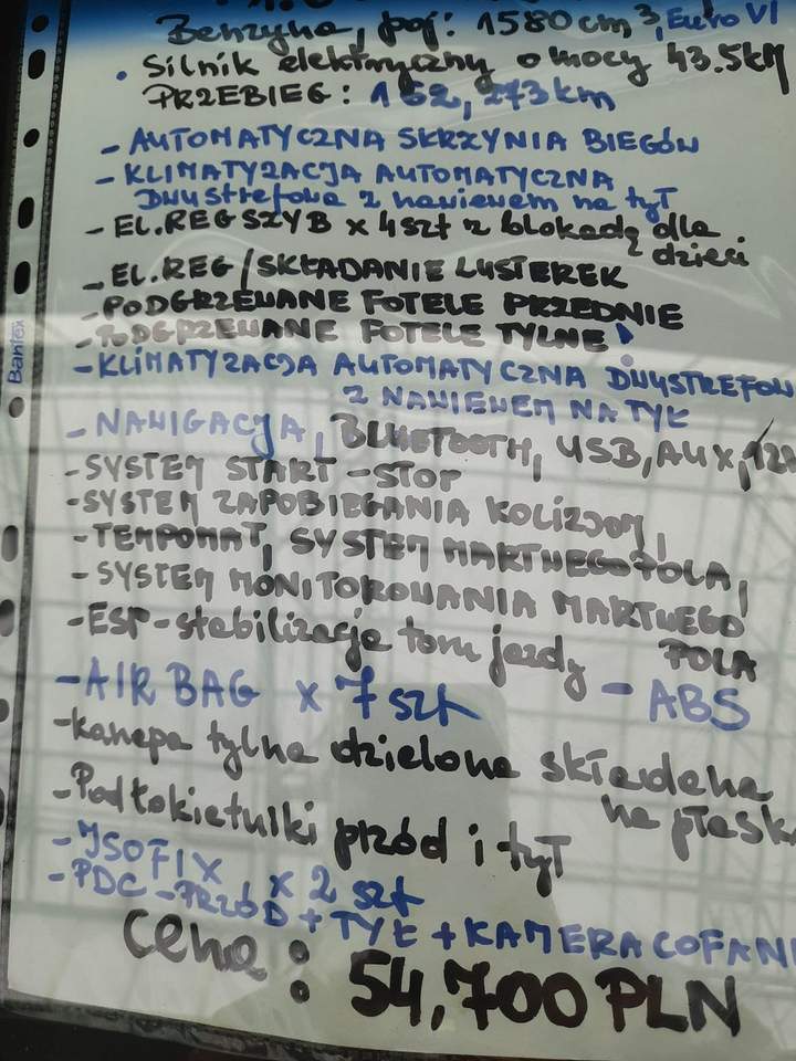 ***PRZY ZAKUPIE AUTA ZAPYTAJ O DODATKOWY RABAT!!! *****ŁAP WYJĄTKOWĄ OKAZJĘ!!!***** ****HYUNDAI IONIQ ROK 2018 HYBRYDA PLUG-IN! ***1.6 GDI BENZYNA, EURO VI,MOC 105 KM -silnik spalinowy ***43.5 kM- silnik elektryczny*** razem moc 141 kM *** Pojemność 1580 cm3 *** Przebieg 162.273 km ***AUTOMATYCZNA SKRZYNIA BIEGÓW ***KLIMATYZACJA AUTOMATYCZNA DWUSTREFOWA Z NAWIEWEM NA TYL ***EL.REG. SZYB *4 SZT Z BLOKADĄ DLA DZIECI ***EL.REG I SKŁADANIE LUSTEREK ***PODGRZEWANE FOTELE PRZEDNIE ***PODGRZEWANE FOTELE TYLNE ***NAWIGACJA, BLUETOOTH,USB, AUX, 12V ***SYSTEM START STOP *** AIR BAG 7 SZT *** SYSTEM ZAPOBIEGANIA KOLIZJOM ***TEMPOMAT, SYSTEM MONITOROWANIA MARTWEGO POLA ***ESP STABILIZACJA TORU JAZDY ***ABS ***PDC CZUJNIKI PARKOWANIA TYŁ I PRZÓD ***KAMERA COFANIA ***KANAPA TYLNA, DZIELONA SKŁADANA NA PŁASKO ***PODŁOKIETNIKI PRZÓD I TYŁ ***ISOFIX 2 SZT *****CENA 50.900 PLN***** ***ZAWIERA KPL OPŁAT DO REJESTRACJI*** ***ŚWIEŻO SPROWADZONY Z DANII ZAPRASZAM SERDECZNIE PAŃSTWA DO ZAPOZNANIA SIĘ Z OFERTA SAMOCHODU JAKIM JEST HYUNDAI IONIQ WERSJA PLUG-IN I KONTAKTU SUPER STAN MECHANICZNY I WIZUALNY TEGO AUTA POSIADA WSZYSTKIE SYSTEMY ZABEZPIECZEŃ SAMOCHÓD DO OBEJRZENIA MYSŁOWICE OBRZEŻNA PÓŁNOCNA 24 HALA A Gdybym nie odbierał telefonu proszę o wiadomość sms -oddzwonię TEL 605 219 139 lub 508 382 381 NIE ZWLEKAJ, UMÓW SIĘ NA JAZDĘ PRÓBNĄ JUŻ DZIŚ! Numer oferty: AKL18F6T6 i00586122864i