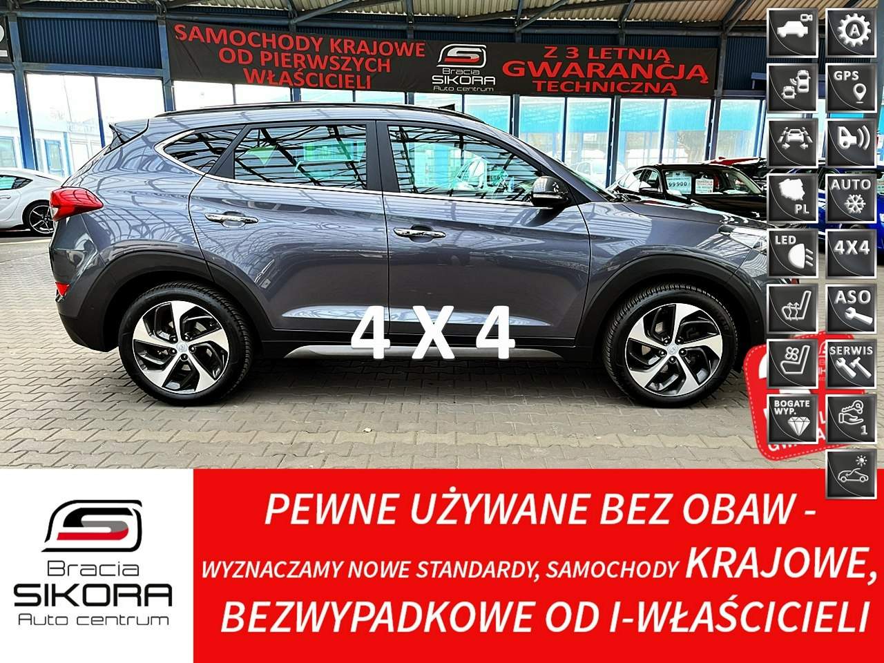 GWARANCJA TECHNICZNA możliwa do 36 MIESIĘCY BEZ LIMITU KILOMETRÓW na CAŁĄ EUROPE BEZWYPADKOWY 100% I-WŁAŚCICIEL W KRAJU ZAKUPIONY U DEALERA HYUNDAIA UDOKUMENTOWANY PRZEBIEG-SERWISOWANY Silnik 1,6 Turbo 16V moc 177 KM AUTOMATYCZNA SKRZYNIA BIEGÓW 7-DCT 4X4 NAPĘD NA WSZYSTKIE KOŁA 4WD Dwa tryby jazdy Normal & Sport Dwupanelowy dach panoramiczny (otwierany/uchylany elektrycznie) Tapicerka skórzana Elektrycznie sterowane, podgrzewane i wentylowane fotele przednie System inteligentnego parkowania - SAM PARKUJE BSD - system monitorowania martwego pola System ostrzegania o ruchu poprzecznym przy jeździe tyłem LKAS - system utrzymywania pasa ruchu SLIF - system informacji o znakach ograniczenia prędkości Przednie światła LED ze spryskiwaczam Światła dzienne wykonane w technologii LED Inteligentny system otwierania bagażnika (elektryczne bezdotykowe otwieranie klapy) Nawigacja (8’’ kolorowy wyświetlacz, DAB - radio cyfrowe, Bluetooth) KAMERA PARKOWANIA PODGRZEWANA KIEROWNICA Oznaczenie edycji limitowanej Tour de Pologne Podgrzewane przednie + tylne fotele (trójstopniowo) Klimatyzacja automatyczna dwustrefowa, funkcja automatycznego odparowywania przedniej szyby TEMPOMAT+ogranicznik CZUJNIKI PARKOWANIA przód + tył Tylne lampy wykonane w technologii LED WIELOFUNKCYJNY DOTYKOWY WYŚWIETLACZ Lusterko fotochromatyczne z kompasem 6xAIRBAG Spryskiwacze reflektorów Czujnik deszczu+zmierzchu ASYSTEN KONTROLI ZJAZDU ECS-SYATEM STABILIZACJI TORU JAZDY TCS-system kontroli trakcji HAC-syatem wspomagania pokonywania podjazdów VSM-system podpowiedzi ruchu kierownicy DBC-system kontroli zjazdu ze wzniesienia ABS,BAS-system wspomagania siły hamowania,EBD,EPS Zegary Super Vision (centralny kolorowy wyświetlacz 4,2’’) Elektrycznie sterowane szyby przednie i tylne (kierowcy Auto Up & Down) Elektryczna regulacja odcinka lędźwiowego fotela kierowcy Centralny zamek na pilota Regulowany kąt oparcia tylnej kanapy Elektryczna regulacja podparcia lędźwiowego Elektrycznie składane+regulowane+podgrzewane lusterka Wspomaganie kierownicy Skórzana multimedialna regulowana kierownica w 2 płaszczyznach Komputer pokładowy z kolorowym LCD 2xpodłokietnik+uchwyty na napoje Alufelgi "19 EKONOMIZER+Sygnalizator zmiany biegów, Sensory Atermiczne szyby+PRZYCIEMNIANE Cyfrowy wskaźnik zużycia paliwa Sygnalizator świateł i pasów Składana oraz dzielona 60:40 tylna kanapa z regulacją kąta pochylenia oparcia i podłokietnikiem Zegarek ,kalendarz, termometr Automatyczna blokada drzwi podczas jazdy,aktywne zagłówki Bluetooth Srebrne osłony pod zderzakiem przednim Srebrna osłona pod zderzakiem tylnym ISOFIX , Gniazdo 12V FABRYCZNY RDS+ USB+AUX+MP Relingi i inne. STAN TECHNICZNY I WIZUALNY ORAZ WNĘTRZA IDEALNY-samochód nie wymaga żadnych nakładów finansowych,ATRAKCYJNY WYGLĄD,od nie palącego. ZOBACZ FILM https://youtu.be/zUvvIOKW40Q ...P E W N E ... U Ż Y W A N E ... B E Z ... O B A W... WYZNACZAMY NOWE STANDARDY-pisemna gwarancja oryginalnego przebiegu+ DOŻYWOTNIA GWARANCJA LEGALNOŚCI POJAZDU W ciągłej sprzedaży 100 samochodów ZAKUPIONYCH U KRAJOWYCH DEALERÓW BEZWYPADKOWYCH OD I-WŁAŚCICIELI AUTO CENTRUM RAFAŁ I DAMIAN SIKORA Zdobywając coraz większe zaufanie klientów podjęto decyzję o opracowaniu profesjonalnego programu sprzedaży samochodów nawet dla najbardziej wymagających klientów. POJAZDY OFEROWANE PRZEZ NAS POCHODZĄ Z ROZLICZEŃ OD KLIENTÓW NASZYCH PARTNERSKICH SALONÓW SAMOCHODÓW NOWYCH. POJAZDY POSIADAJĄ GWARANCJĘ PRAWNĄ I TECHNICZNĄ ORAZ GWARANCJĘ ORYGINALNEGO PRZEBIEGU. NA SAMOCHODY OFEROWANE PRZEZ NAS WYSTAWIAMY FAKTURY-klient nie płaci podatku od wzbogacenia. MOŻNA JE NABYĆ ZA GOTÓWKĘ lub zapłacić przelewem KREDYCIE na całą wartość samochodu lub w programie 2x50%,3x33%,4x25% LEASINGU lub WYNAJMIE LUB ZOSTAWIĆ INNY POJAZD W ROZLICZENIU. PRZED PRZYJAZDEM PROSZĘ O KONTAKT TELEFONICZNY- samochody wystawiane są w dwóch miejscach. Firma posiada bogatą ofertę samochodów różnych marek i klas,daje gwarancję wysokiej jakości usług oraz elastyczność w działaniu. Duże doświadczenie,olbrzymie zaangażowanie,obsługa klienta według najwyższych standardów-to atuty które wyróżniają naszą firmę w stosunku do innych firm handlujących samochodami na Polskim rynku. Dlatego też mamy samochody tylko od I-WŁAŚCICIELI,BEZWYPADKOWE,ZAKUPIONE W POLSKICH SALONACH SAMOCHODOWYCH,Z UDOKUMENTOWANYMI PRZEBIEGAMI. Możliwość sprawdzenia samochodu przed zakupem w serwisie i na stacji diagnostycznej . Wykonujemy pomiar grubości lakieru. Możliwość leasingowania lub kredytowania nawet 100% wartości pojazdu. Niniejsze ogłoszenie jest wyłącznie informacją handlową i nie stanowi oferty w myśl Kodeksu Cywilnego.Sprzedający nie odpowiada za ewentualne błędy lub nieaktualność ogłoszenia.Zapis ten został zawarty ze względu na możliwość drobnych ,ludzkich pomyłek. Numer oferty: AKL18HGH1 i00586760235i
