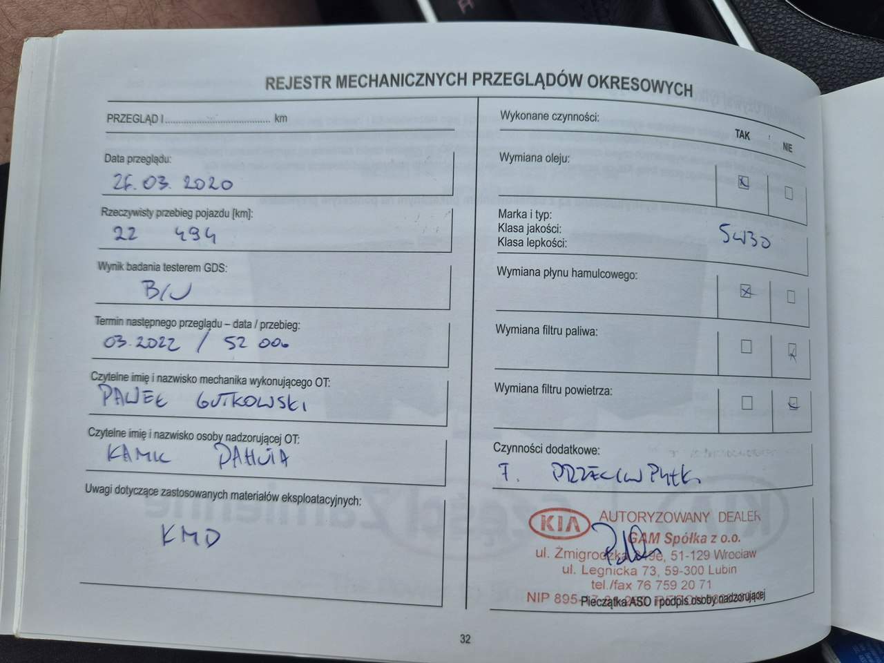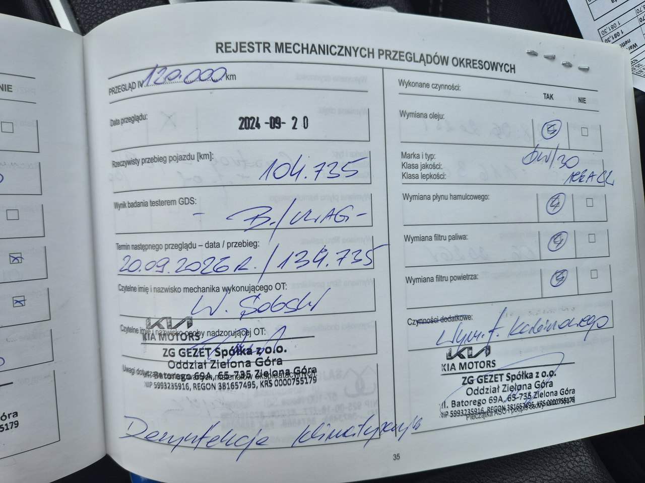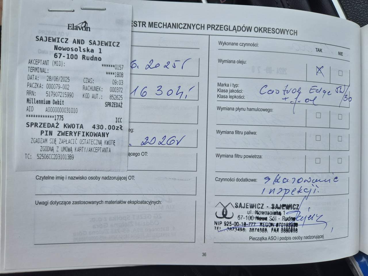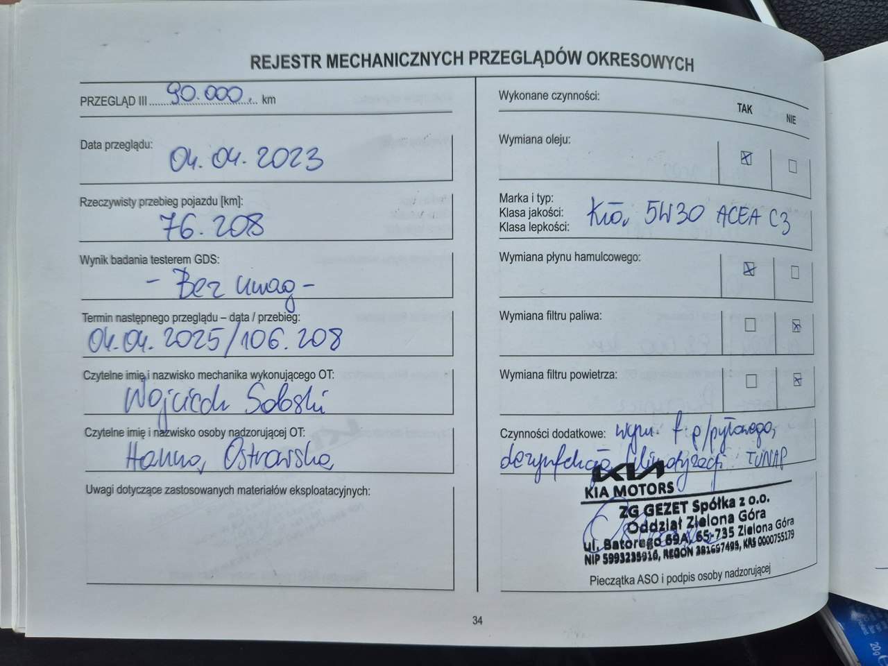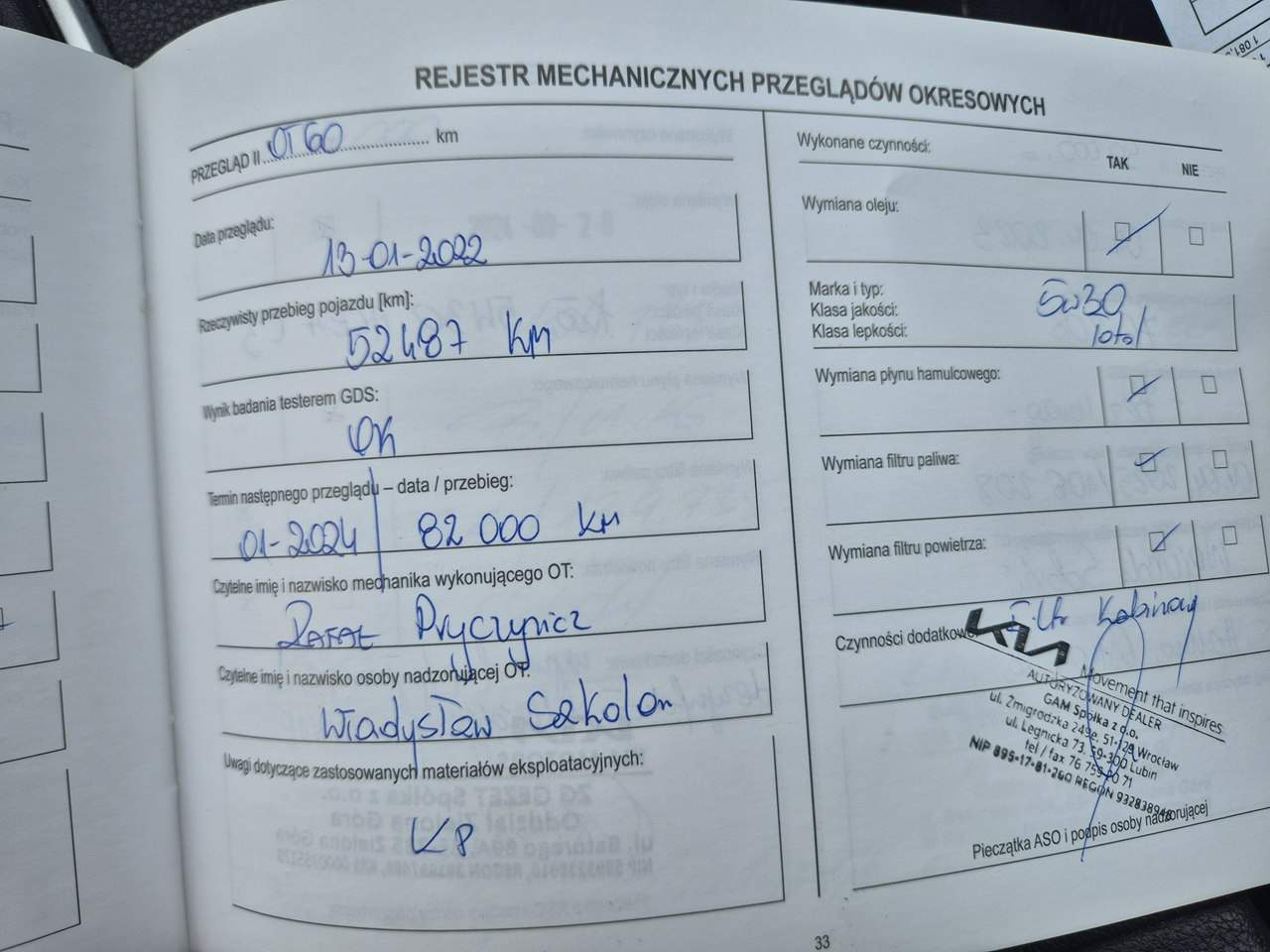 - Serwisowany w ASO Tak