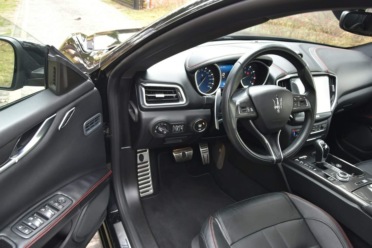 Maserati Ghibli |w limitowanej wersji NerissimoEdition one of 450 | 3.0 V6 350KM | Bezwypadkowy | Zarejestrowany w PL | 2017 lift Auto sprowadzone ze Stanów Zjednoczonych, 100% bezwypadkowe, w październiku 2025 roku trafiło do Polski. Samochód jest zarejestrowany, ubezpieczony i gotowy do jazdy. Numer VIN i CarFax udostępniam na życzenie klienta – wystarczy tylko telefon, zapraszamy do kontaktu. Wersja Nerissimo (z włoskiego: „bardzo czarny”) to limitowana edycja modelu Ghibli, wyróżniająca się ciemnym, eleganckim wykończeniem. Kolor nadwozia: Nero (czarny) – kod lakieru PPG 229519 Zestaw zewnętrzny „Full Black Kit” (czarny grill, czarne klamki, czarne lusterka) – kod MMF Wykończenia w chromie błyszczącym: MJF Felgi: 20” Urano Dark Finish (kod 9S6) Zaciski hamulców: czerwone (4TA) Wnętrze: Podsufitka: czarna Deska rozdzielcza: czarna z czerwonym przeszyciem Fotele: czarna skóra z czerwonymi przeszyciami (pionowe przeszycia, kod 212) Pasy bezpieczeństwa: czarne Dywaniki: czarne welurowe Panele drzwi: czarne z czerwonym przeszyciem Kierownica: czarna, sportowa (6BN) Wnętrze utrzymane jest w stylu „Nero + Rosso stitching”, czyli elegancka czerń z kontrastowym czerwonym przeszyciem — charakterystyczny motyw edycji Nerissimo. --- Dane techniczne: Silnik: 3.0 V6 Twin Turbo Moc: 350 KM Napęd: tylna oś (RWD) Skrzynia biegów: automatyczna (8-biegowa ZF) Rok produkcji: 2017 lift Wersja: Nerissimo Edition one of 450 Przebieg km: 101tys. km Kraj pochodzenia: USA Pierwsza rejestracja w Polsce: 10.2025 --- Wyposażenie: Tapicerka skórzana w czarnym kolorze Fotele przednie podgrzewane, z pamięcią ustawień System multimedialny z dużym ekranem dotykowym Kamera cofania i czujniki parkowania przód/tył System nagłośnienia premium Nawigacja, Bluetooth, USB, Apple CarPlay / Android Auto Wiele trybów jazdy (Normal, Sport, ICE) 20-calowe felgi aluminiowe w kolorze czarnym Przyciemniane szyby Czarna podsufitka Pełen pakiet stylistyczny Nerissimo – czarne detale, emblematy i grill --- Stan techniczny i wizualny: Samochód w idealnym stanie, zarówno mechanicznie, jak i wizualnie. Silnik, skrzynia oraz zawieszenie pracują bez zarzutu. Wnętrze czyste, zadbane, bez przetarć. Auto nie wymaga żadnego wkładu finansowego. Wykonana pełna konwersja do warunków Europejskich, mile na km, przerobione lampy, wgrane Polskie menu. Posiadam dwa komplety kluczy. --- Dodatkowe informacje: Auto posiada pełną dokumentację z USA, posiadam foto z aukcji i transportu do Polski. Zarejestrowane ubezpieczone w Polsce Możliwość sprawdzenia auta w dowolnym serwisie lub stacji diagnostycznej. Możliwość weryfikacji stanu auta przed zakupem. Więcej dodatkowych informacji pod nr 510 509 211. Przed przyjazdem skontaktuj się z nami telefonicznie, aby upewnić się, że samochód jest wciąż dostępny. ------------------------------------------------------------------------------------ Jeśli jesteś zainteresowany tym lub innym pojazdem — zapraszamy do kontaktu w wiadomości prywatnej lub telefonicznie po więcej szczegółów. To idealny moment na zakup auta z USA — dolar jest obecnie najtańszy od lat, dzięki czemu możesz spełnić marzenie o wymarzonym samochodzie w wyjątkowo korzystnej cenie. Zapewniamy pełną obsługę do ostatniego etapu transportu: ✔ odprawa pojazdu w Europie ✔ komplet dokumentów ✔ dostawa pod wskazany adres ✔ brak ukrytych kosztów AutomotiveUSA 510 509 211 | 510 509 212 biuro.automotiveusa@gmail.com Numer oferty: AKL18H9Y9 i00586656279i