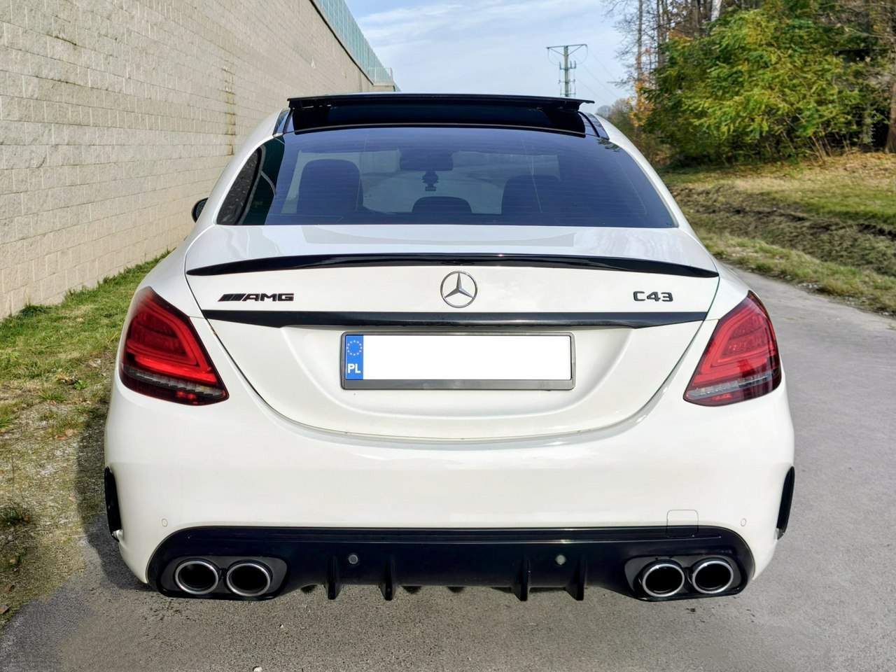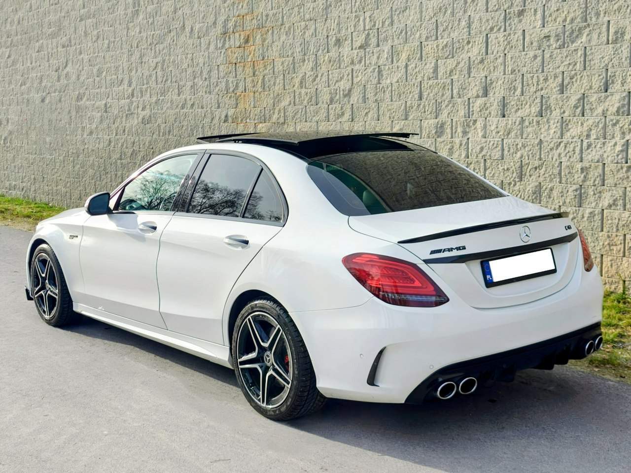 Mercedes-Benz C43 AMG 4MATIC 3.0 V6 Bi-Turbo – 2020 r. Przebieg: 75 777 km Silnik: 2 996 cm³ – 287 kW / 390 KM Skrzynia: Automatyczna, 9-biegowa 9G-TRONIC Napęd: 4x4 4MATIC Performance Kolor: Polar White (biel polarna – lakier uni) Wnętrze: Skóra Artico / mikrofibra Dinamica – czarna Wersja: AMG Line Egzemplarz w doskonałej kondycji technicznej i wizualnej Mercedes C43 AMG to połączenie luksusu i emocji – mocny silnik V6 Bi-Turbo o mocy 390 KM, stały napęd 4MATIC i układ wydechowy AMG Performance Exhaust gwarantujący sportowe brzmienie. W tym egzemplarzu usunięto katalizatory, co pozwoliło podnieść moc i uzyskać efekt „pops & bangs” podczas redukcji. Na życzenie nowego właściciela istnieje możliwość przywrócenia ustawień fabrycznych, w tym montażu oryginalnych katalizatorów. Wyposażenie: Pakiety i stylizacja AMG: AMG Line Exterior – zderzaki, progi, grill i dyfuzor AMG AMG Line Interior – sportowa kabina z aluminiowymi akcentami Kierownica AMG Performance – skóra nappa, spłaszczona u dołu Fotele sportowe z regulacją bocznego podparcia Zegary AMG z centralnym obrotomierzem 18-calowe felgi AMG Double-Spoke Zawieszenie AMG Ride Control z regulacją twardości Komfort i wnętrze: Skórzana tapicerka Artico / mikrofibra Dinamica (czarna) Fotele przednie podgrzewane, elektrycznie regulowane z pamięcią ustawień Elektryczna kolumna kierownicza z pamięcią Panoramiczny dach szklany – otwierany i uchylny Klimatyzacja automatyczna Thermatic System Keyless-Go – bezkluczykowy dostęp i uruchamianie Oświetlenie ambientowe wnętrza (regulacja kolorów i natężenia) System Audio 20 GPS z ekranem centralnym 10,25” System nagłośnienia Burmester® Ładowarka indukcyjna do smartfona Gniazda USB i Bluetooth Zegarek analogowy na konsoli środkowej Elektrycznie sterowana klapa bagażnika Pakiet schowków i pakiet oświetlenia wnętrza Bezpieczeństwo i asystenci: 7 poduszek powietrznych + system PRE-SAFE® System utrzymania pasa ruchu i asystent martwego pola Aktywny tempomat z funkcją odległości (DISTRONIC) Aktywny asystent hamowania (FCW-STOP) System monitorowania ciśnienia w oponach (RDK High Line) Park Assist (PARKTRONIC) + kamera 360° Czujniki parkowania przód/tył Asystent świateł drogowych + reflektory LED High Performance Automatycznie przyciemniane lusterka zewnętrzne i wewnętrzne E-call system (Hermes) Funkcja otwierania bramy garażowej (HomeLink) Dane techniczne: Silnik: 3.0 V6 Bi-Turbo Moc fabryczna: 390 KM (obecnie wyższa po modyfikacji – ok. 420–430 KM) Moment obrotowy: 520 Nm Napęd: stały 4MATIC Skrzynia: 9-biegowa automatyczna 9G-Tronic Przyspieszenie 0–100 km/h: 4,7 s Masa własna: 1 760 kg DMC: 2 225 kg Paliwo: benzyna Norma emisji: Euro 6 Dodatkowe informacje z historii pojazdu: Rok produkcji: 2020 Pierwsza rejestracja za granicą: 01.01.2020 Pierwsza rejestracja w Polsce: 18.12.2024 Ostatni stan licznika (12.2024): 67 250 km Aktualny przebieg: 75 777 km Właścicieli w Polsce: 1 Województwo rejestracji: łódzkie Ciekawostki o modelu: C43 AMG to „sweet spot” w gamie AMG – łączy moc i dźwięk z codzienną użytecznością. Napęd 4MATIC zapewnia doskonałą trakcję, a zawieszenie AMG Ride Control balansuje między komfortem i sportem. Układ wydechowy AMG Performance Exhaust z klapami sterowanymi – po modyfikacji generuje rasowe „pops & bangs”. Mercedes-Benz C43 AMG 4MATIC – to perfekcyjny balans między komfortem klasy premium a surowym, emocjonującym charakterem AMG. Ten egzemplarz to coś więcej niż samochód – to emocje na każdy dzień, z brzmieniem, które przypomina o tym, czym naprawdę jest AMG. Numer oferty: AKL18FFYY i00586224049i
