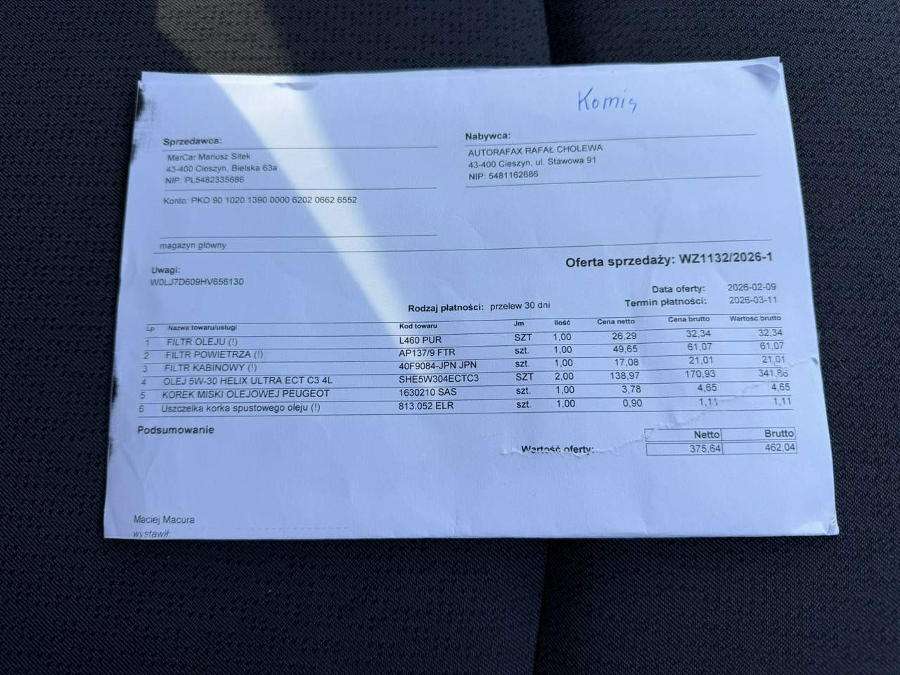 Komentarz od sprzedawcy