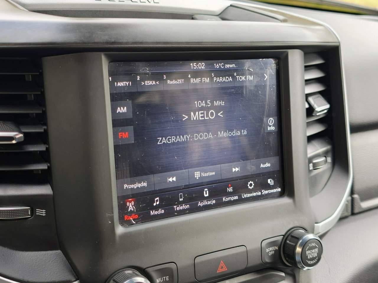 RAM 1500 Big Horn Crew Cab 4x4 | HEMI eTorque | Kamera | CarPlay | 20" Rok produkcji: 2021 Przebieg: 102 254 km Silnik: 5.7 V8 HEMI eTorque Moc: 395 KM Skrzynia biegów: Automatyczna 8-biegowa Napęd: 4x4 Kolor lakieru: Billet Silver Metallic – srebrny metalik Tapicerka: Materiałowa Najważniejsze atuty Silnik 5.7 V8 HEMI z systemem eTorque System eTorque – lepsza dynamika, niższe spalanie i płynniejsza praca Napęd 4x4 Bogata wersja Big Horn Duży ekran 8.4 cala Apple CarPlay oraz Android Auto Kamera cofania Elektryczny fotel kierowcy Elektryczne pedały Składane elektrycznie lusterka Przesuwana tylna szyba elektryczna Hak holowniczy Felgi 20 cali Bezpieczeństwo i systemy wsparcia Kamera cofania ParkView Czujniki parkowania Elektroniczna kontrola stabilności Kontrola trakcji Hill Start Assist Trailer Sway Control Kompletny pakiet poduszek powietrznych Komfort i wnętrze Klimatyzacja automatyczna Elektryczny fotel kierowcy z regulacją lędźwiową Podłokietnik centralny Wielofunkcyjna kierownica obszyta skórą Elektryczne szyby i lusterka System bezkluczykowy Remote Start Multimedia i technologia System Uconnect Ekran 8.4 cala Apple CarPlay Android Auto Bluetooth Sterowanie głosowe Radio satelitarne Nadwozie i elementy zewnętrzne Felgi aluminiowe 20 cali Reflektory halogenowe + światła LED dzienne Światła przeciwmgielne Relingi Pakiet stylistyczny Sport Appearance Hak holowniczy Ciekawostki o modelu RAM 1500 to jeden z najbardziej komfortowych pickupów na rynku – zawieszenie i wyciszenie znacznie przewyższają klasyczne konstrukcje użytkowe. Silnik 5.7 V8 HEMI w połączeniu z systemem eTorque to nowoczesne podejście do klasycznego V8 – układ mild hybrid wspomaga silnik przy ruszaniu, poprawia dynamikę i zmniejsza zużycie paliwa. System eTorque działa jak dodatkowy „boost” momentu obrotowego, co sprawia, że auto reaguje szybciej i płynniej niż tradycyjne jednostki V8 bez wspomagania. Dzięki temu rozwiązaniu RAM oferuje połączenie mocy, kultury pracy i komfortu jazdy, które wyróżnia go na tle konkurencji. Model ten jest bardzo popularny w USA jako auto uniwersalne – sprawdza się zarówno w pracy, jak i jako komfortowy samochód do codziennej jazdy. Numer oferty: AKL18HYM9 i00586843803i