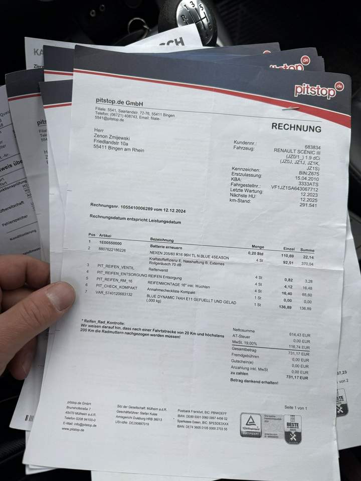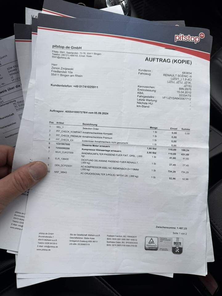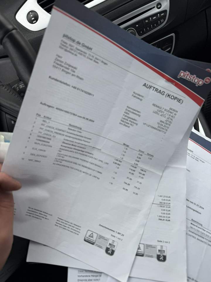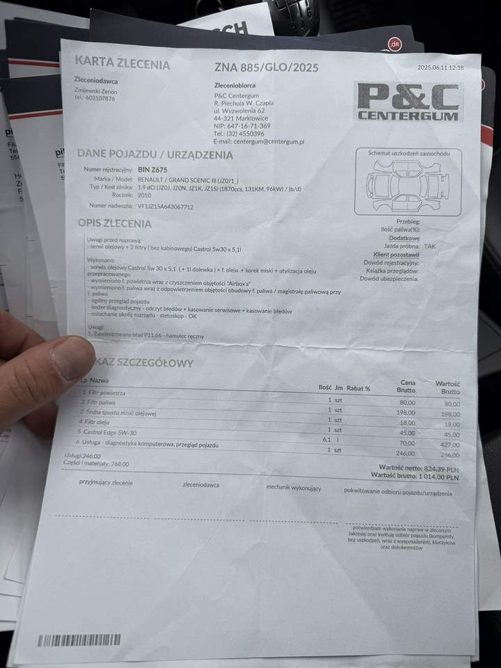 Renault Grand Scenic z 2010 r 1.9 DCI 130 Km Autko bez wkladu finansowego ,nowy rozrzad plus oleje i filtry,nowe zawieszenie przód,. kpl.nowy kompresor klimatyzacji dwa komplety kol aluminiowych gotowy do rejestracji w polsce samochód zakupiony od osoby prywatnej w niemczech . samochód bardzo doinwestowany potwierdzony fakturami na kwote 18 tyś zł 300 km temu przeszedł Niemiecki przegląd więc samochód jest w stanie technicznym wzorowym !!!!! wsiadać i jechać lakier wyglkąda wzorowo , jak ktoś szuka uczciwego samochodu który jeszcze dlugo pojezdzi bez wkladu zapraszam do oględzin !! faktury w zdjęciach do wglądu !!!! Auto czyste, zadbane, nie wymaga wkładu finansowego W pełni sprawne, na bieżąco serwisowane Kupujący zwolniony z opłat PCC3 2% Wystawiam fakturę VAT marża. więcej zdjęć na portalu www.cargames.otmoto.pl (dla klienta z [...] ) kontakt : 881314869 Serdeczne zapraszamy na jazdę próbną! RATY ZAMIANA GWARANCJA Samochód chroniony przez Inteligentny System Gwarancji który zapewnia: Drobna usterka? Poważna awaria? Wielki pech na drodze? Istnieje możliwość sprzedaży danego AUTA z programem GET HELP SERWIS − jest to pisemna gwarancja na auto od 3 do 12 miesięcy w zależności od wyboru opcji STANDARD lub PREMIUM. GWARANCJA ta obejmuje: wszystkie usterki techniczne wynikłe po nabyciu pojazdu między innymi: jednostkę napędową silnik, skrzynie biegów manualną oraz automatyczną, mechanizmy różnicowe, wały napędowe, obudowy ( skrzyni biegów, silników, mostów, miski olejowej), komputer główny silnika, diagnostykę komputerową przednie i tylne zawieszenie, amortyzatory, sprężyny,, zawieszenie hydro pneumatyczne, paski rozrządu, łańcuchy rozrządu, koła zamachowe i dwumasowe oraz turbosprężarki, Auto Assistance- transport do warsztatu w razie awarii. GWARANCJA działa na terenie Całej Polski 24h 7dni w tygodniu 365 dni w roku, Dla Naszych Klientów aplikacja iHelp - umożliwiająca obsługę gwarancji 24h na dobę i 365 dni w roku - GRATIS !!! Niniejsze ogłoszenie jest wyłącznie informacją handlową i nie stanowi oferty w myśl art. 66, § 1. Kodeksu Cywilnego. Sprzedający nie odpowiada za ewentualne błędy lub nieaktualność ogłoszenia. Zapis ten został zawarty z uwagi na możliwość drobnych ludzkich pomyłek. Jeżeli zauważysz nieścisłość - prosimy kontakt telefoniczny lub mailowy, a natychmiast ją wyjaśnimy. Numer oferty: AKL18GCTK i00586453627i