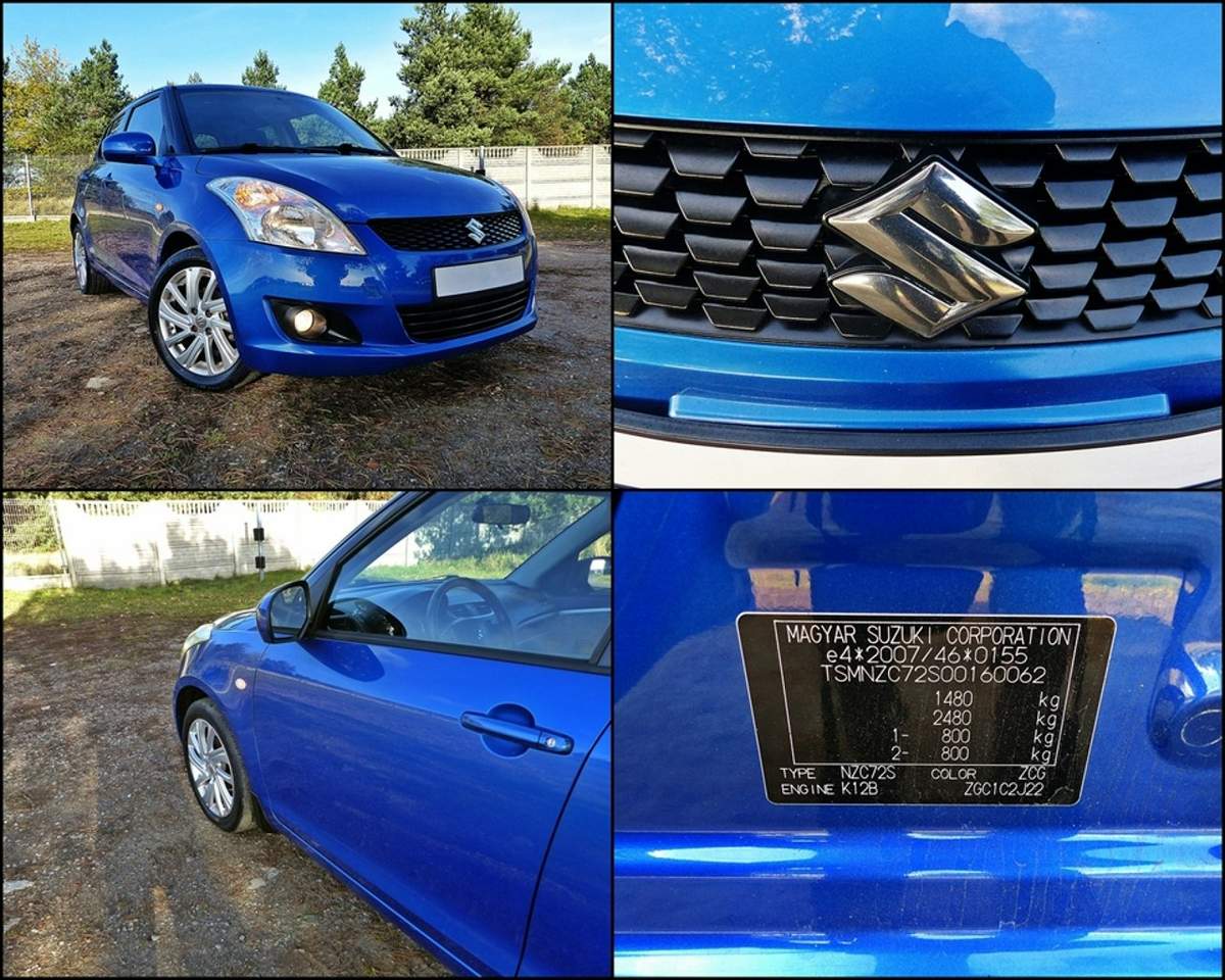 UWAGA! 40 ZDJĘĆ POJAZDU NA EUROSTAR AUTOPLAC PL Witam serdecznie wszystkich oglądających Mam do sprzedania bardzo ładnego i bogato wyposażonego Suzuki Swifta z roku 2011, w kolorze niebieski metallic i dobrze wyposażonej wersji COMFORT PLUS. Auto jest wyposażone w benzynowy silnik o pojemności 1200 ccm i mocy 94 koni mechanicznych. Jest to jednostka napędowa, charakteryzująca się dobrą dynamiką i osiągami, a przy tym małym zużyciem paliwa i wysoką trwałością – bez problemu osiąga przebiegi rzędu 600 tys. km!!. Jest to unowocześniona wersja tego silnika, posiadająca jeszcze lepsze parametry niż poprzednik. Silnik nie zdradza żadnych objawów zużycia, wszystko chodzi jak należy. Jednostka na łańcuchu rozrządu. Spalanie w mieście to ok. 7,0 l/100 km, natomiast w trasie 5,5l/100 km. Samochód jest bardzo zadbany, nie posiada oznak korozji, był na bieżąco i do końca serwisowany w ASO Suzuki i serwisach niezależnych. Silnik i wszystkie elementy pojazdu są w pełni sprawne. Klimatyzacja działa. Tapicerka czysta, bez plam i przetarć, w środku nigdy nie było palone. Wnętrze (plastiki, przełącznik zmiany biegów, kierownica) w stanie bardzo dobrym!!! Elektryka w pełni sprawna, wszystkie przyciski i przełączniki działają bez najmniejszych problemów. Zawieszenie nie wybite, bez luzów. Nie wydaje żadnych podejrzanych stuków. Samochód prowadzi się pewnie i bezpiecznie przy każdej prędkości. Wszystkie podzespoły są absolutnie w pełni sprawne.Blacharsko i lakierniczo w stanie bardzo dobrym. Samochód przed sprzedażą przeszedł gruntowny przegląd. Wszystko w trosce o zadowolenie i bezproblemową eksploatację przyszłego nabywcy. *Przebieg pojazdu : 235 tyś. km. - 100% oryginalny, nie kręcony!!! Do potwierdzenia w ASO. Pisemna gwarancja przebiegu. *Samochód jest bogato wyposażony *Wyposażenie prezentowanego egzemplarza to m.in.: 8x poduszki powietrzne Elektryczne szyby Klimatyzacja Elektrycznie sterowane i podgrzewane lusterka Komputer pokładowy Welurowa tapicerka Oryginalny Zestaw audio z 6 głośnikami i sterowaniem przy kierownicy (bardzo wysoka jakość dźwięku i duża moc głośników) Gniazdo USB Wspomaganie układu kierowniczego ABS ASR ESP BAS Fotele z pełna regulacją Dzielona tylna kanapa Centralny zamek Fotele z pełną regulacją Kolumna kierownicy regulowana w dwóch płaszczyznach Opony – Stan bardzo dobry ….... i wiele innych dodatków podnoszących komfort i bezpieczeństwo jazdy. *Kupujący zwolniony z opłaty skarbowej. Wystawiam fakturę VAT-marżę. *Samochód przed sprzedażą miał zrobiony gruntowny przegląd, tak aby wyeliminować ewentualne, ukryte wady. Wszystko to w trosce o pełną satysfakcję i zadowolenie klienta. *CENA EKSPORTOWA. W cenie ubezpieczenie i tablice dojazdowe. *Zgadzam się na sprawdzenie auta w dowolnie wybranej przez klienta stacji kontroli pojazdów. *Zapraszam na oględziny i jazdę próbną do Piły (woj. Wielkopolskie). Zapewniam, że nie przyjadą Państwo na marne. W OFERCIE POSIADAM RÓWNIEŻ INNE SAMOCHODY. MOŻLIWOŚĆ SPROWADZENIA WYBRANEGO AUTA NA ZAMÓWIENIE I ŻYCZENIE KLIENTA. WWW.EUROSTAR.AUTOPLAC.PL FACEBOOK.COM/EUROSTAR.AUTO.PILA – POLUB NA FEJSIE :) "Niniejsze ogłoszenie nie jest ofertą w rozumieniu art. 66 Kodeksu cywilnego" Numer oferty: AKL18FFVM i00586224614i