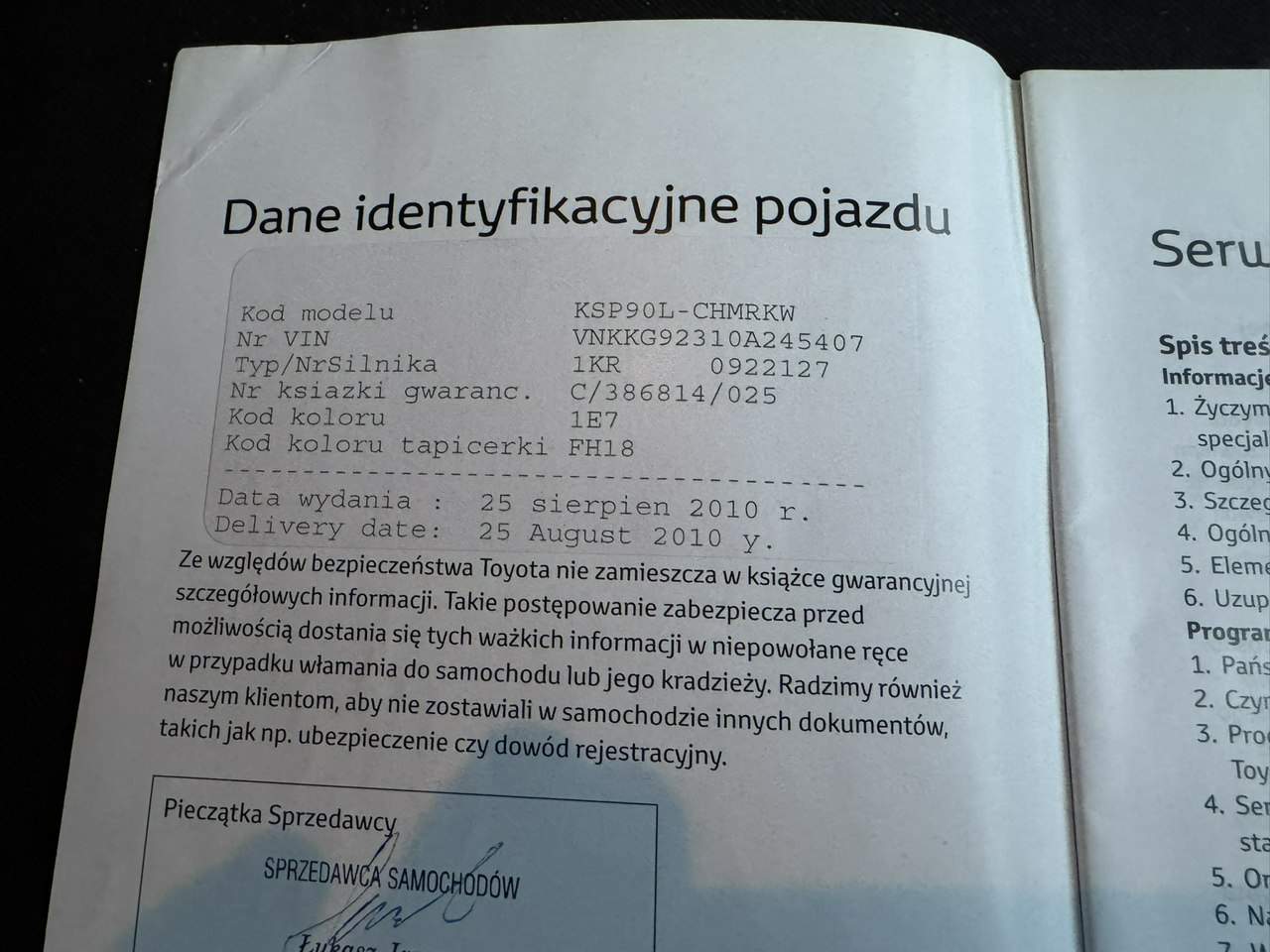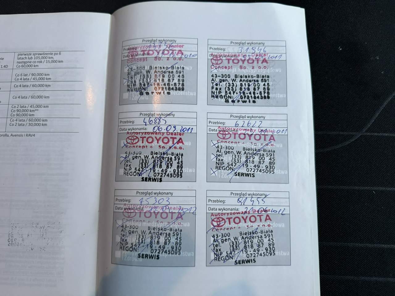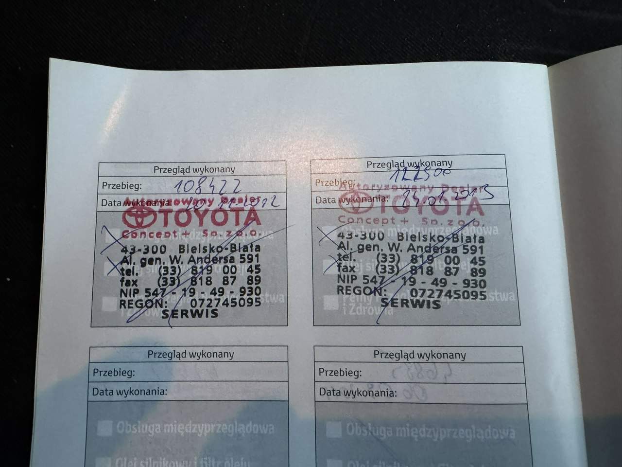 - Serwisowany w ASO Nie