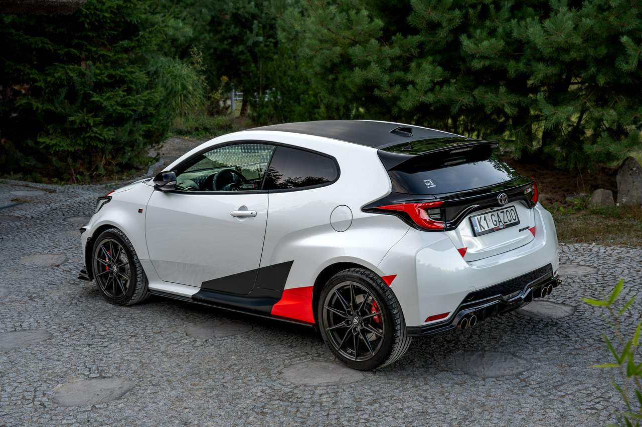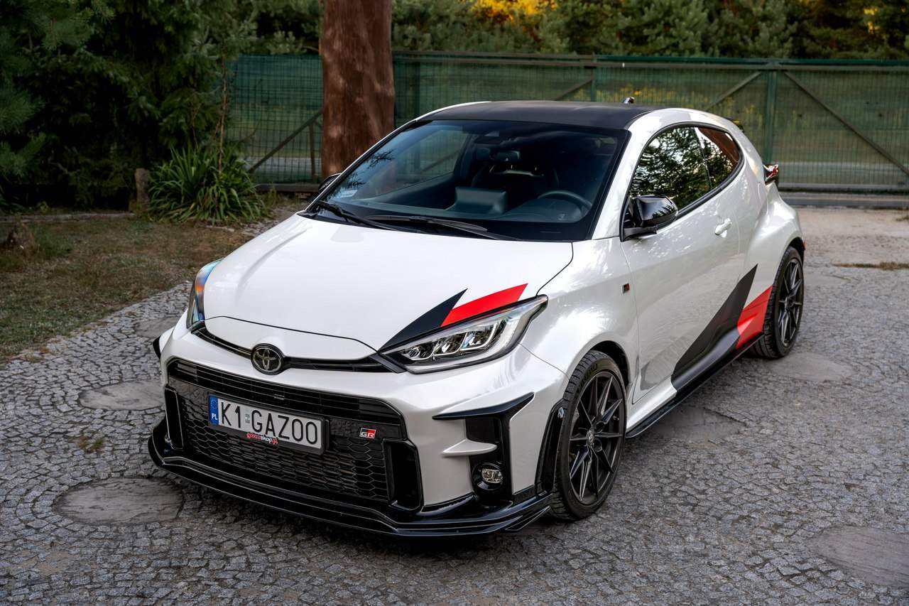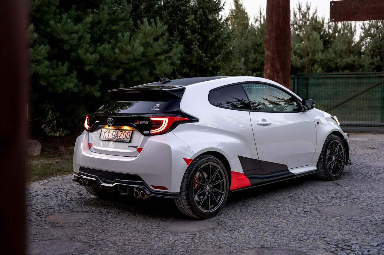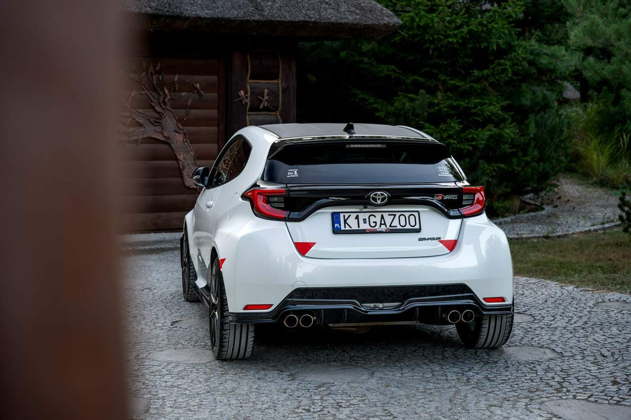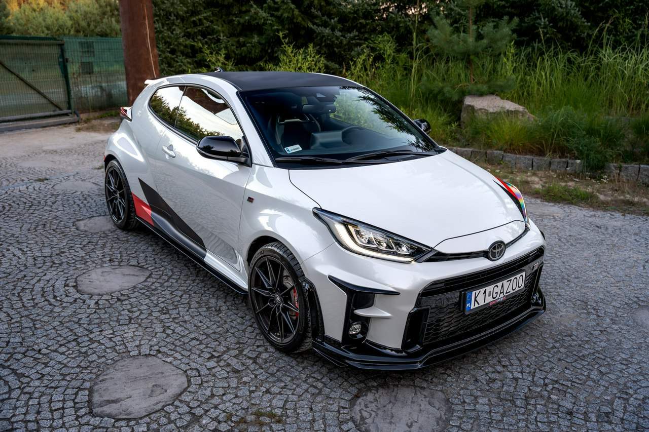 Toyota Yaris GR-Four W2C 1.6 Turbo 261KM / Pakiet GR Parts / TRD / Salon Polska / Bezwypadkowy / FV 23% / Felgi OZ RACING / Obniżenie fotela ────────────────────────────────────────────────────────────────── CESJA LEASINGU TOYOTA LEASING . ODSTĘPNE : 47.777 PLN (Istnieje możliwość przyjęcia innego pojazdu w rozliczeniu w zamian za odstępne) . KAPITAŁ : 109.810 PLN NETTO . RATY : 2.035 NETTO (KAPITAŁ PLUS ODSETKI) . POZOSTAŁO : 28 RAT . WYKUP W 05-2028 W KWOCIE 79.990 NETTO . ŁĄCZNIE : 179.777 PLN BRUTTO ────────────────────────────────────────────────────────────────── Salon PL, udokumentowana historia serwisowa - REGULARNE PRZEGLĄDY , komplet kluczyków i pełna dokumentacja pokładowa samochód garażowany, serwis na bieżąco, pojazd zakupiony jako nowy u autoryzowanego dealera w Polsce. Gwarancja Relax Toyota obowiązuje do dnia 16.06.2026, z możliwością jej przedłużenia do 2030 roku. Wszystkie przeglądy oraz czynności serwisowe były wykonywane terminowo w autoryzowanym serwisie ASO Toyoty. Przeglądy olejowe realizowane były maksymalnie co 12 miesięcy, niezależnie od przebiegu. Ostatni przegląd został wykonany w czerwcu 2025 r. przy przebiegu 10 500 km. ────────────────────────────────────────────────────────────────── Indywidualne doposażenie pojazdu w m.in : ✔️ PAKIET GR Parts / TRD : Elementy pakietu GR Parts / TRD: * Spojler dolny przedniego zderzaka * Dokładki bocznych progów * Tylny dyfuzor * Dodatkowe spojlery i lotki nadkoli * Pasy boczne i grafiki Elementy poprawiające osiągi i prowadzenie : * Układ wydechowy TRD * Sprężyny sportowe obniżające * Rozpórka przednich kielichów * Klocki hamulcowe TRD (przednie i tylne) ────────────────────────────────────────────────────────────────── WAŻNE > Toyota Yaris GR /benzyna ✔️ kupiony w polskim salonie Silnik: 1.618 cm³ Lakier: Platinum White Pearl Wnętrze: Tapicerka z ekologicznego zamszu w kolorze czarnym ze skórzanymi boczkami i wykończeniem w kolorze czerwonym Skrzynia biegów: Manualna skrzynia biegów Rocznik: 2020 r Przebieg km.: 14 383km Książka serwisowa: TAK VIN : JTDAF4E380A001985 Kraj pochodzenia: Polska Stan : Bezwypadkowe ────────────────────────────────────────────────────────────────── Wyposażenie : ✔️Komfort i funkcjonalność : Elektrycznie regulowane szyby z zabezpieczeniem przed przycięciem palców Elektrycznie regulowane lusterka zewnętrzne Elektrycznie składane lusterka zewnętrzne Podgrzewane lusterka zewnętrzne Automatycznie ściemniające się lusterko wsteczne Lusterko na osłonie przeciwsłonecznej kierowcy Lusterko na osłonie przeciwsłonecznej pasażera Gniazdo 12 V w konsoli centralnej Multifunkcyjna kierownica z obsługą systemów multimedialnych Manetki zmiany biegów przy kierownicy dla skrzyni automatycznej Klimatyzacja automatyczna (dwustrefowa) Uruchamianie silnika przyciskiem System bezkluczykowego dostępu do samochodu (Inteligentny kluczyk) ✔️Oświetlenie : System opóźnionego wyłączenia świateł po zgaszeniu silnika Światła do jazdy dziennej w technologii LED Światła główne w technologii LED Manualna regulacja świateł głównych Automatyczny wyłącznik świateł głównych Tylne światła w technologii LED ✔️Stylistyka i wyposażenie zewnętrzne : Lusterka zewnętrzne w kolorze czarnym Przedni zderzak w kolorze fortepianowej czerni Antena dachowa w kształcie płetwy rekina Tylny spojler Wykończenie przedniego dolnego grilla GR-FOUR Przyciemniane szyby tylne 18" Felgi aluminiowe z oponami 225/40 R18 ✔️Wygląd wnętrza : Trójramienna sportowa kierownica obszyta skórą Gałka dźwigni zmiany biegów obszyta skórą Nakładki progowe Aluminiowe nakładki na pedały Dywaniki welurowe Tylna kanapa składana w proporcji 60:40 Sportowe fotele GR ✔️Systemy multimedialne i nawigacji : 6 głośników Porty USB-C System Bluetooth® umożliwiający bezprzewodową łączność z telefonem Digital Cockpit – cyfrowy wyświetlacz na tablicy wskaźników (12,3") System multimedialny Toyota Smart Connect+® z kolorowym ekranem dotykowym (8") Nawigacja Connected z dodatkowym trybem offline i 4-letnią darmową transmisją danych Usługi łączności Toyota Connected Car Interfejs Apple CarPlay*, interfejs Android Auto™ Inteligentny asystent głosowy Obsługa stacji radiowych w technologii cyfrowej ✔️Bezpieczeństwo i nowe technologie : Przednie i boczne poduszki powietrzne kierowcy i pasażera Kurtyny powietrzne Wyłącznik przedniej poduszki powietrznej pasażera System mocowania fotelików dziecięcych na skrajnych tylnych siedzeniach Sygnalizacja niezapiętych pasów bezpieczeństwa z przodu i z tyłu System wspomagający hamowanie Sygnał awaryjnego hamowania System zapobiegający blokowaniu kół System wspomagający pokonywanie podjazdów System monitorowania ciśnienia w oponach Inteligentne wycieraczki z czujnikiem deszczu Automatyczne światła z czujnikiem zmierzchu ✔️Sport : Selektor trybów jazdy Bezramkowe drzwi wykonane z aluminium Dach wykonany z kompozytów z włóknem węglowym Pokrywa silnika wykonana z aluminium Podwójne końcówki układu wydechowego Czerwone zaciski hamulców Przedni i tylny dyferencjał Torsen LSD Intercooler z natryskiem wody Wloty powietrza do chłodzenia hamulców Napęd na cztery koła GR-FOUR ✔️Toyota T-Mate : In