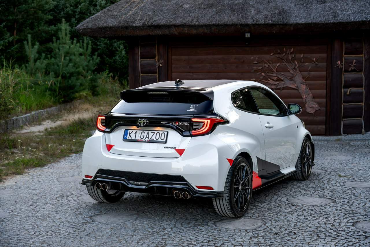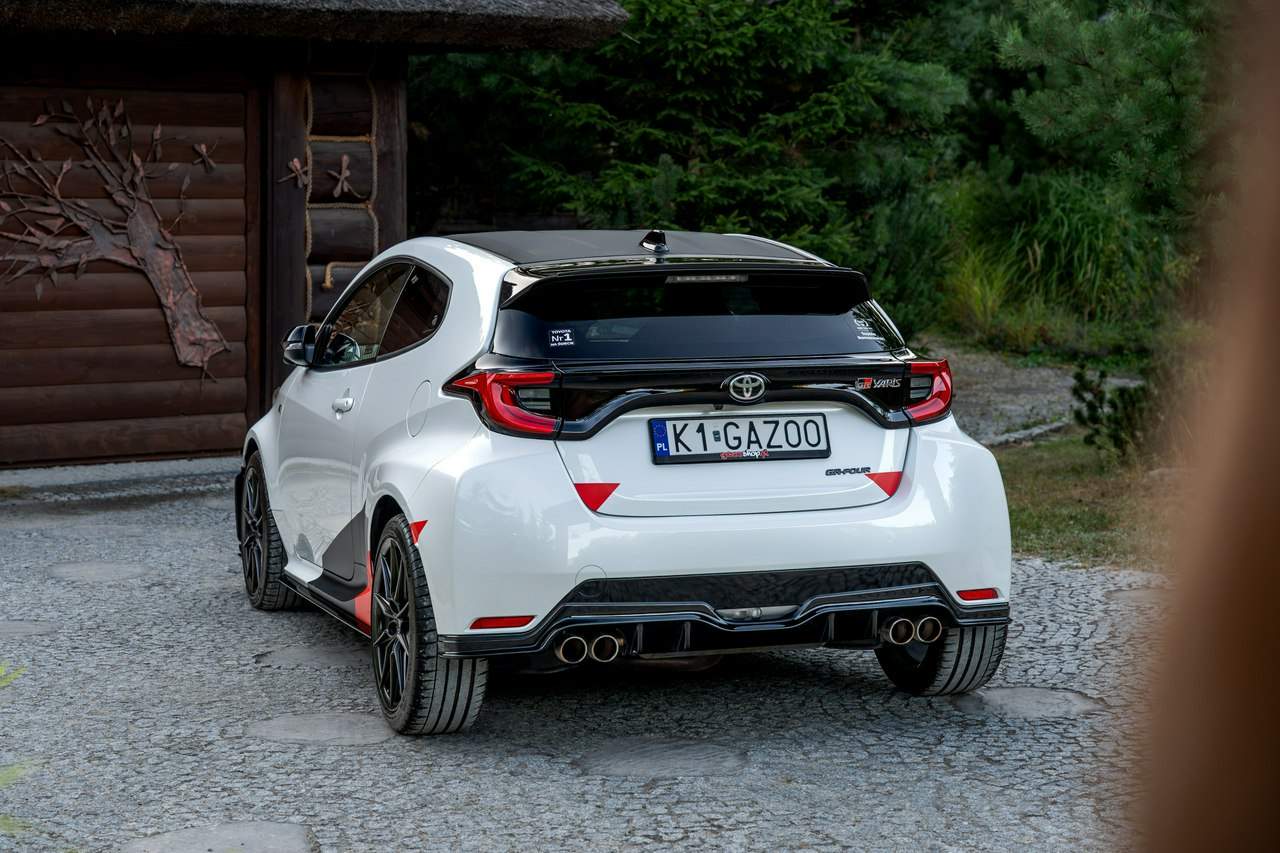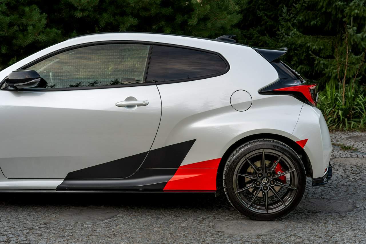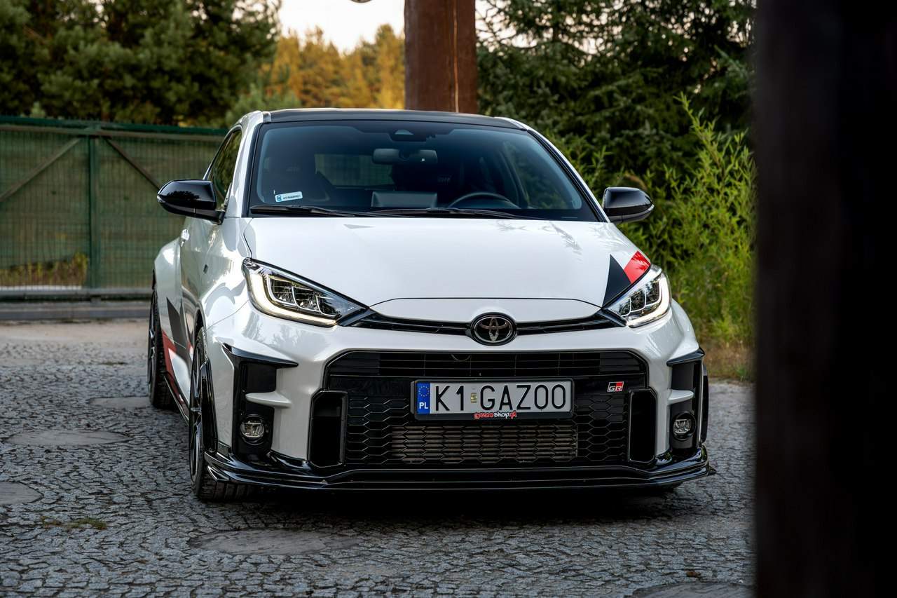 Toyota Yaris GR-Four W2C 1.6 Turbo 261KM / Pakiet GR Parts / TRD / Salon Polska / Bezwypadkowy / FV 23% / Felgi OZ RACING / Obniżenie fotela ────────────────────────────────────────────────────────────────── CESJA LEASINGU TOYOTA LEASING . ODSTĘPNE : 47.777 PLN (Istnieje możliwość przyjęcia innego pojazdu w rozliczeniu w zamian za odstępne) . KAPITAŁ : 109.810 PLN NETTO . RATY : 2.035 NETTO (KAPITAŁ PLUS ODSETKI) . POZOSTAŁO : 28 RAT . WYKUP W 05-2028 W KWOCIE 79.990 NETTO . ŁĄCZNIE : 179.777 PLN BRUTTO ────────────────────────────────────────────────────────────────── Salon PL, udokumentowana historia serwisowa - REGULARNE PRZEGLĄDY , komplet kluczyków i pełna dokumentacja pokładowa samochód garażowany, serwis na bieżąco, pojazd zakupiony jako nowy u autoryzowanego dealera w Polsce. Gwarancja Relax Toyota obowiązuje do dnia 16.06.2026, z możliwością jej przedłużenia do 2030 roku. Wszystkie przeglądy oraz czynności serwisowe były wykonywane terminowo w autoryzowanym serwisie ASO Toyoty. Przeglądy olejowe realizowane były maksymalnie co 12 miesięcy, niezależnie od przebiegu. Ostatni przegląd został wykonany w czerwcu 2025 r. przy przebiegu 10 500 km. ────────────────────────────────────────────────────────────────── Indywidualne doposażenie pojazdu w m.in : ✔️ PAKIET GR Parts / TRD : Elementy pakietu GR Parts / TRD: * Spojler dolny przedniego zderzaka * Dokładki bocznych progów * Tylny dyfuzor * Dodatkowe spojlery i lotki nadkoli * Pasy boczne i grafiki Elementy poprawiające osiągi i prowadzenie : * Układ wydechowy TRD * Sprężyny sportowe obniżające * Rozpórka przednich kielichów * Klocki hamulcowe TRD (przednie i tylne) ────────────────────────────────────────────────────────────────── WAŻNE > Toyota Yaris GR /benzyna ✔️ kupiony w polskim salonie Silnik: 1.618 cm³ Lakier: Platinum White Pearl Wnętrze: Tapicerka z ekologicznego zamszu w kolorze czarnym ze skórzanymi boczkami i wykończeniem w kolorze czerwonym Skrzynia biegów: Manualna skrzynia biegów Rocznik: 2020 r Przebieg km.: 14 383km Książka serwisowa: TAK VIN : JTDAF4E380A001985 Kraj pochodzenia: Polska Stan : Bezwypadkowe ────────────────────────────────────────────────────────────────── Wyposażenie : ✔️Komfort i funkcjonalność : Elektrycznie regulowane szyby z zabezpieczeniem przed przycięciem palców Elektrycznie regulowane lusterka zewnętrzne Elektrycznie składane lusterka zewnętrzne Podgrzewane lusterka zewnętrzne Automatycznie ściemniające się lusterko wsteczne Lusterko na osłonie przeciwsłonecznej kierowcy Lusterko na osłonie przeciwsłonecznej pasażera Gniazdo 12 V w konsoli centralnej Multifunkcyjna kierownica z obsługą systemów multimedialnych Manetki zmiany biegów przy kierownicy dla skrzyni automatycznej Klimatyzacja automatyczna (dwustrefowa) Uruchamianie silnika przyciskiem System bezkluczykowego dostępu do samochodu (Inteligentny kluczyk) ✔️Oświetlenie : System opóźnionego wyłączenia świateł po zgaszeniu silnika Światła do jazdy dziennej w technologii LED Światła główne w technologii LED Manualna regulacja świateł głównych Automatyczny wyłącznik świateł głównych Tylne światła w technologii LED ✔️Stylistyka i wyposażenie zewnętrzne : Lusterka zewnętrzne w kolorze czarnym Przedni zderzak w kolorze fortepianowej czerni Antena dachowa w kształcie płetwy rekina Tylny spojler Wykończenie przedniego dolnego grilla GR-FOUR Przyciemniane szyby tylne 18" Felgi aluminiowe z oponami 225/40 R18 ✔️Wygląd wnętrza : Trójramienna sportowa kierownica obszyta skórą Gałka dźwigni zmiany biegów obszyta skórą Nakładki progowe Aluminiowe nakładki na pedały Dywaniki welurowe Tylna kanapa składana w proporcji 60:40 Sportowe fotele GR ✔️Systemy multimedialne i nawigacji : 6 głośników Porty USB-C System Bluetooth® umożliwiający bezprzewodową łączność z telefonem Digital Cockpit – cyfrowy wyświetlacz na tablicy wskaźników (12,3") System multimedialny Toyota Smart Connect+® z kolorowym ekranem dotykowym (8") Nawigacja Connected z dodatkowym trybem offline i 4-letnią darmową transmisją danych Usługi łączności Toyota Connected Car Interfejs Apple CarPlay*, interfejs Android Auto™ Inteligentny asystent głosowy Obsługa stacji radiowych w technologii cyfrowej ✔️Bezpieczeństwo i nowe technologie : Przednie i boczne poduszki powietrzne kierowcy i pasażera Kurtyny powietrzne Wyłącznik przedniej poduszki powietrznej pasażera System mocowania fotelików dziecięcych na skrajnych tylnych siedzeniach Sygnalizacja niezapiętych pasów bezpieczeństwa z przodu i z tyłu System wspomagający hamowanie Sygnał awaryjnego hamowania System zapobiegający blokowaniu kół System wspomagający pokonywanie podjazdów System monitorowania ciśnienia w oponach Inteligentne wycieraczki z czujnikiem deszczu Automatyczne światła z czujnikiem zmierzchu ✔️Sport : Selektor trybów jazdy Bezramkowe drzwi wykonane z aluminium Dach wykonany z kompozytów z włóknem węglowym Pokrywa silnika wykonana z aluminium Podwójne końcówki układu wydechowego Czerwone zaciski hamulców Przedni i tylny dyferencjał Torsen LSD Intercooler z natryskiem wody Wloty powietrza do chłodzenia hamulców Napęd na cztery koła GR-FOUR ✔️Toyota T-Mate : In