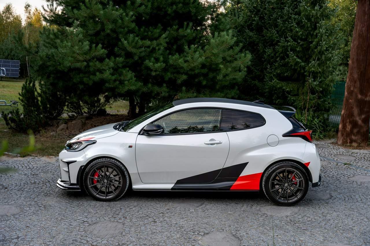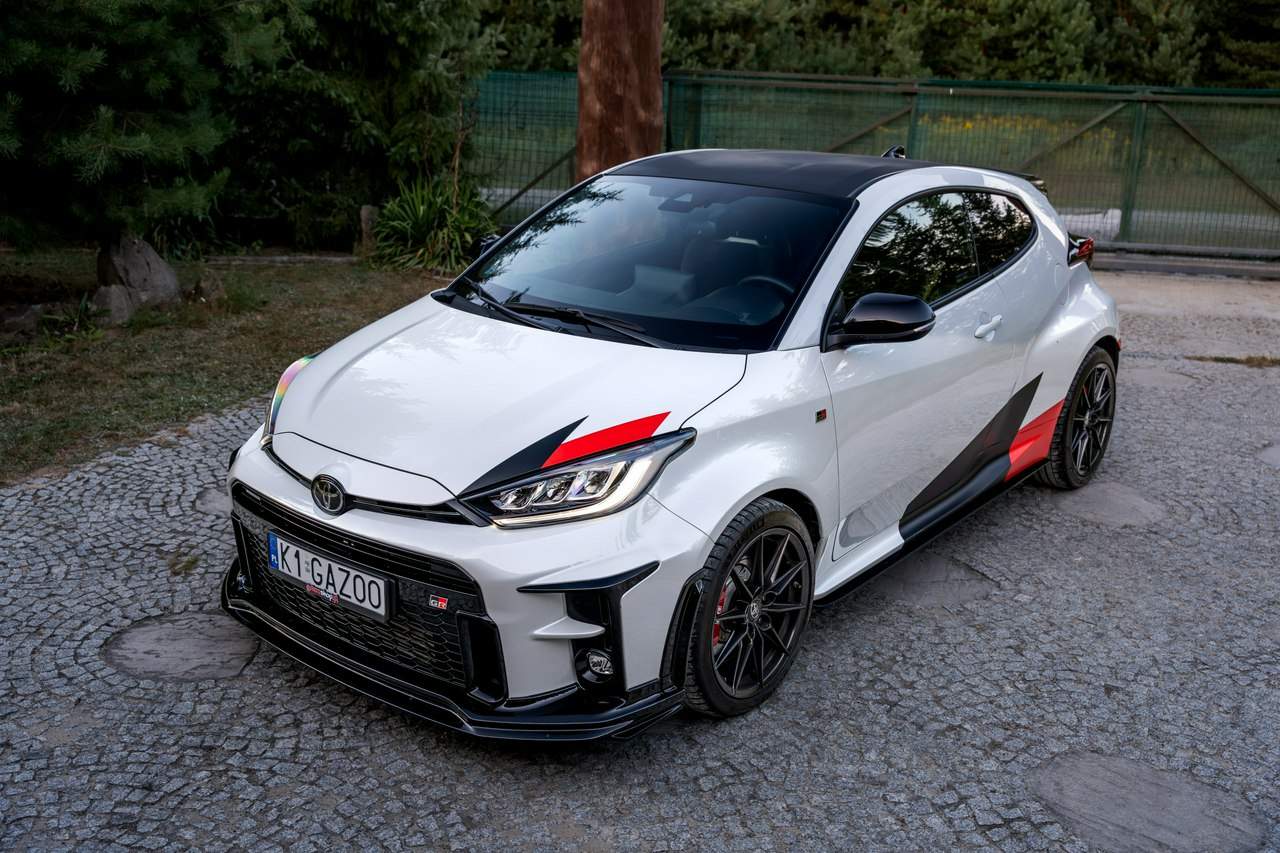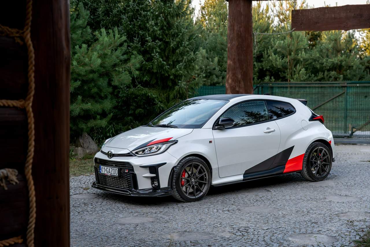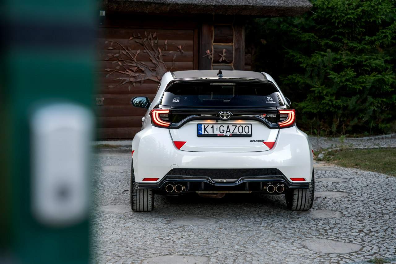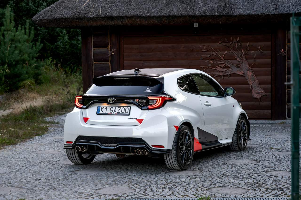 Toyota Yaris GR-Four W2C 1.6 Turbo 261KM / Pakiet GR Parts / TRD / Salon Polska / Bezwypadkowy / FV 23% / Felgi OZ RACING / Obniżenie fotela ────────────────────────────────────────────────────────────────── CESJA LEASINGU TOYOTA LEASING . ODSTĘPNE : 47.777 PLN (Istnieje możliwość przyjęcia innego pojazdu w rozliczeniu w zamian za odstępne) . KAPITAŁ : 109.810 PLN NETTO . RATY : 2.035 NETTO (KAPITAŁ PLUS ODSETKI) . POZOSTAŁO : 28 RAT . WYKUP W 05-2028 W KWOCIE 79.990 NETTO . ŁĄCZNIE : 179.777 PLN BRUTTO ────────────────────────────────────────────────────────────────── Salon PL, udokumentowana historia serwisowa - REGULARNE PRZEGLĄDY , komplet kluczyków i pełna dokumentacja pokładowa samochód garażowany, serwis na bieżąco, pojazd zakupiony jako nowy u autoryzowanego dealera w Polsce. Gwarancja Relax Toyota obowiązuje do dnia 16.06.2026, z możliwością jej przedłużenia do 2030 roku. Wszystkie przeglądy oraz czynności serwisowe były wykonywane terminowo w autoryzowanym serwisie ASO Toyoty. Przeglądy olejowe realizowane były maksymalnie co 12 miesięcy, niezależnie od przebiegu. Ostatni przegląd został wykonany w czerwcu 2025 r. przy przebiegu 10 500 km. ────────────────────────────────────────────────────────────────── Indywidualne doposażenie pojazdu w m.in : ✔️ PAKIET GR Parts / TRD : Elementy pakietu GR Parts / TRD: * Spojler dolny przedniego zderzaka * Dokładki bocznych progów * Tylny dyfuzor * Dodatkowe spojlery i lotki nadkoli * Pasy boczne i grafiki Elementy poprawiające osiągi i prowadzenie : * Układ wydechowy TRD * Sprężyny sportowe obniżające * Rozpórka przednich kielichów * Klocki hamulcowe TRD (przednie i tylne) ────────────────────────────────────────────────────────────────── WAŻNE > Toyota Yaris GR /benzyna ✔️ kupiony w polskim salonie Silnik: 1.618 cm³ Lakier: Platinum White Pearl Wnętrze: Tapicerka z ekologicznego zamszu w kolorze czarnym ze skórzanymi boczkami i wykończeniem w kolorze czerwonym Skrzynia biegów: Manualna skrzynia biegów Rocznik: 2020 r Przebieg km.: 14 383km Książka serwisowa: TAK VIN : JTDAF4E380A001985 Kraj pochodzenia: Polska Stan : Bezwypadkowe ────────────────────────────────────────────────────────────────── Wyposażenie : ✔️Komfort i funkcjonalność : Elektrycznie regulowane szyby z zabezpieczeniem przed przycięciem palców Elektrycznie regulowane lusterka zewnętrzne Elektrycznie składane lusterka zewnętrzne Podgrzewane lusterka zewnętrzne Automatycznie ściemniające się lusterko wsteczne Lusterko na osłonie przeciwsłonecznej kierowcy Lusterko na osłonie przeciwsłonecznej pasażera Gniazdo 12 V w konsoli centralnej Multifunkcyjna kierownica z obsługą systemów multimedialnych Manetki zmiany biegów przy kierownicy dla skrzyni automatycznej Klimatyzacja automatyczna (dwustrefowa) Uruchamianie silnika przyciskiem System bezkluczykowego dostępu do samochodu (Inteligentny kluczyk) ✔️Oświetlenie : System opóźnionego wyłączenia świateł po zgaszeniu silnika Światła do jazdy dziennej w technologii LED Światła główne w technologii LED Manualna regulacja świateł głównych Automatyczny wyłącznik świateł głównych Tylne światła w technologii LED ✔️Stylistyka i wyposażenie zewnętrzne : Lusterka zewnętrzne w kolorze czarnym Przedni zderzak w kolorze fortepianowej czerni Antena dachowa w kształcie płetwy rekina Tylny spojler Wykończenie przedniego dolnego grilla GR-FOUR Przyciemniane szyby tylne 18" Felgi aluminiowe z oponami 225/40 R18 ✔️Wygląd wnętrza : Trójramienna sportowa kierownica obszyta skórą Gałka dźwigni zmiany biegów obszyta skórą Nakładki progowe Aluminiowe nakładki na pedały Dywaniki welurowe Tylna kanapa składana w proporcji 60:40 Sportowe fotele GR ✔️Systemy multimedialne i nawigacji : 6 głośników Porty USB-C System Bluetooth® umożliwiający bezprzewodową łączność z telefonem Digital Cockpit – cyfrowy wyświetlacz na tablicy wskaźników (12,3") System multimedialny Toyota Smart Connect+® z kolorowym ekranem dotykowym (8") Nawigacja Connected z dodatkowym trybem offline i 4-letnią darmową transmisją danych Usługi łączności Toyota Connected Car Interfejs Apple CarPlay*, interfejs Android Auto™ Inteligentny asystent głosowy Obsługa stacji radiowych w technologii cyfrowej ✔️Bezpieczeństwo i nowe technologie : Przednie i boczne poduszki powietrzne kierowcy i pasażera Kurtyny powietrzne Wyłącznik przedniej poduszki powietrznej pasażera System mocowania fotelików dziecięcych na skrajnych tylnych siedzeniach Sygnalizacja niezapiętych pasów bezpieczeństwa z przodu i z tyłu System wspomagający hamowanie Sygnał awaryjnego hamowania System zapobiegający blokowaniu kół System wspomagający pokonywanie podjazdów System monitorowania ciśnienia w oponach Inteligentne wycieraczki z czujnikiem deszczu Automatyczne światła z czujnikiem zmierzchu ✔️Sport : Selektor trybów jazdy Bezramkowe drzwi wykonane z aluminium Dach wykonany z kompozytów z włóknem węglowym Pokrywa silnika wykonana z aluminium Podwójne końcówki układu wydechowego Czerwone zaciski hamulców Przedni i tylny dyferencjał Torsen LSD Intercooler z natryskiem wody Wloty powietrza do chłodzenia hamulców Napęd na cztery koła GR-FOUR ✔️Toyota T-Mate : In