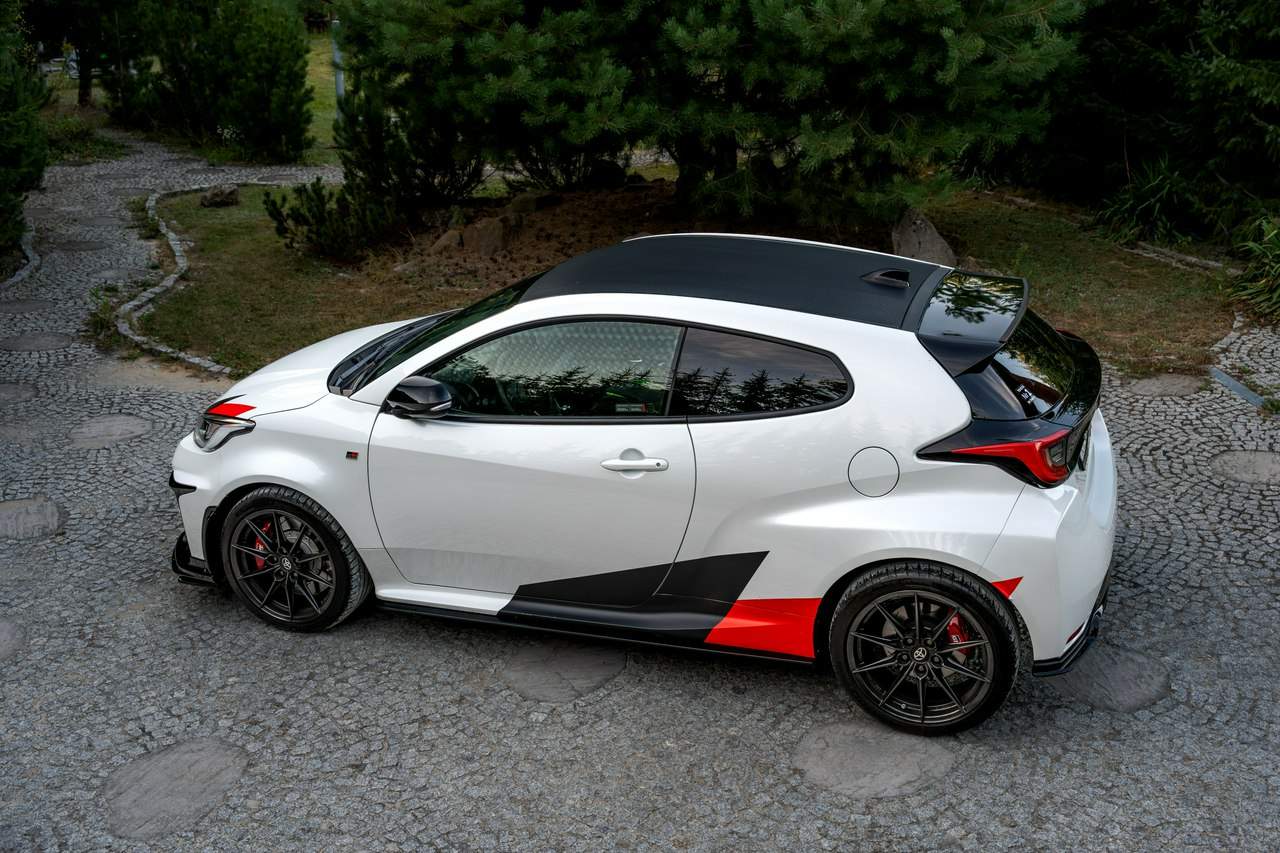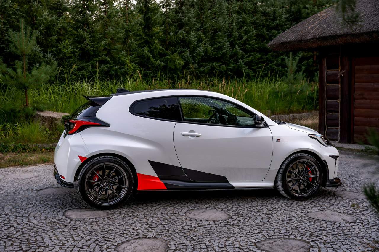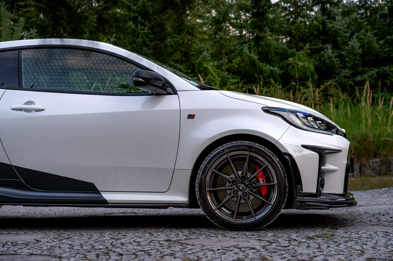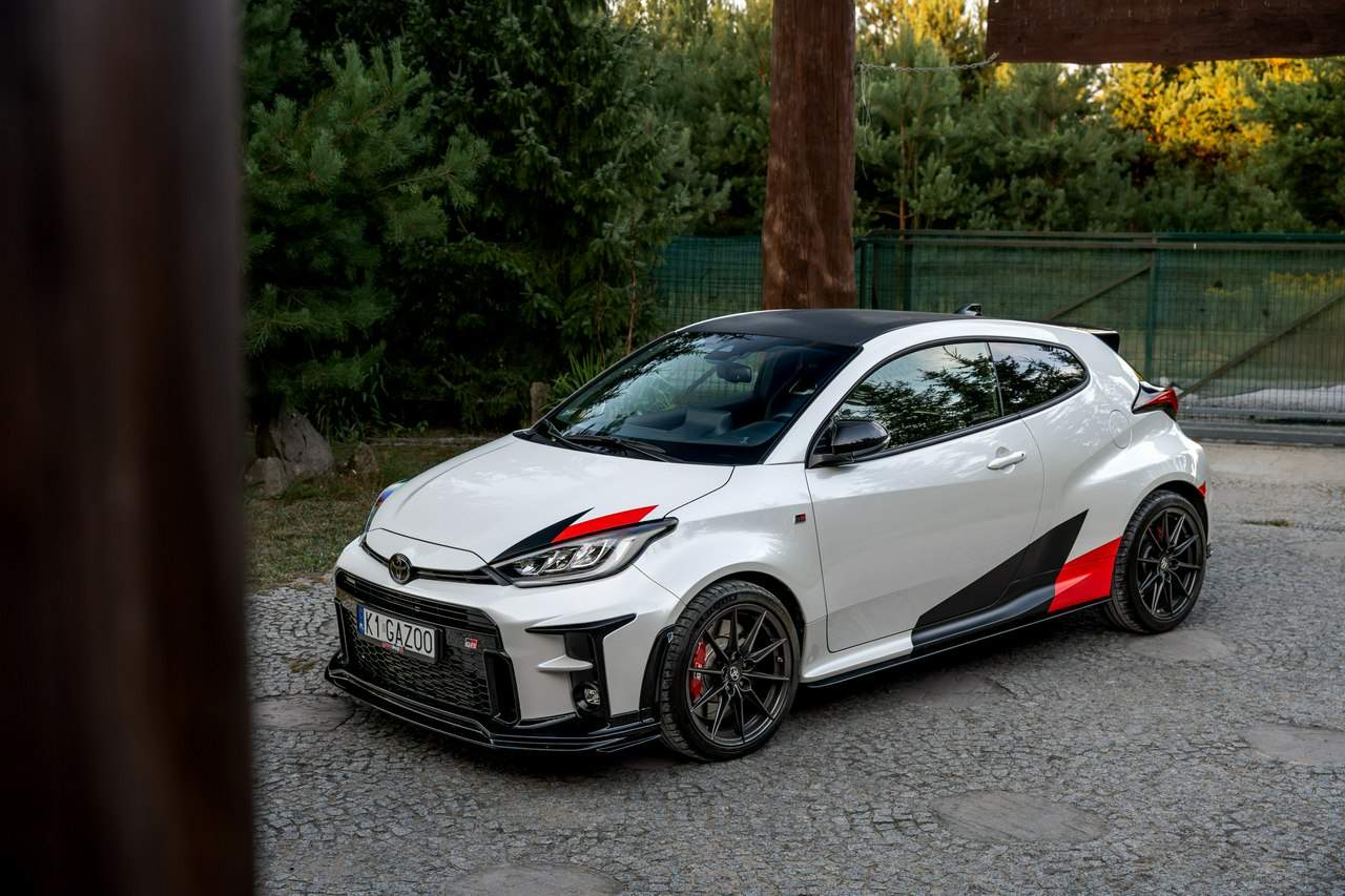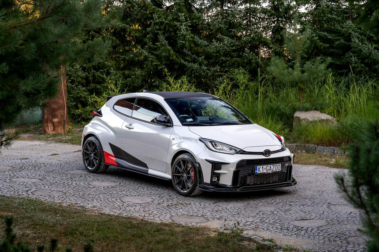 Toyota Yaris GR-Four W2C 1.6 Turbo 261KM / Pakiet GR Parts / TRD / Salon Polska / Bezwypadkowy / FV 23% / Felgi OZ RACING / Obniżenie fotela ────────────────────────────────────────────────────────────────── CESJA LEASINGU TOYOTA LEASING . ODSTĘPNE : 47.777 PLN (Istnieje możliwość przyjęcia innego pojazdu w rozliczeniu w zamian za odstępne) . KAPITAŁ : 109.810 PLN NETTO . RATY : 2.035 NETTO (KAPITAŁ PLUS ODSETKI) . POZOSTAŁO : 28 RAT . WYKUP W 05-2028 W KWOCIE 79.990 NETTO . ŁĄCZNIE : 179.777 PLN BRUTTO ────────────────────────────────────────────────────────────────── Salon PL, udokumentowana historia serwisowa - REGULARNE PRZEGLĄDY , komplet kluczyków i pełna dokumentacja pokładowa samochód garażowany, serwis na bieżąco, pojazd zakupiony jako nowy u autoryzowanego dealera w Polsce. Gwarancja Relax Toyota obowiązuje do dnia 16.06.2026, z możliwością jej przedłużenia do 2030 roku. Wszystkie przeglądy oraz czynności serwisowe były wykonywane terminowo w autoryzowanym serwisie ASO Toyoty. Przeglądy olejowe realizowane były maksymalnie co 12 miesięcy, niezależnie od przebiegu. Ostatni przegląd został wykonany w czerwcu 2025 r. przy przebiegu 10 500 km. ────────────────────────────────────────────────────────────────── Indywidualne doposażenie pojazdu w m.in : ✔️ PAKIET GR Parts / TRD : Elementy pakietu GR Parts / TRD: * Spojler dolny przedniego zderzaka * Dokładki bocznych progów * Tylny dyfuzor * Dodatkowe spojlery i lotki nadkoli * Pasy boczne i grafiki Elementy poprawiające osiągi i prowadzenie : * Układ wydechowy TRD * Sprężyny sportowe obniżające * Rozpórka przednich kielichów * Klocki hamulcowe TRD (przednie i tylne) ────────────────────────────────────────────────────────────────── WAŻNE > Toyota Yaris GR /benzyna ✔️ kupiony w polskim salonie Silnik: 1.618 cm³ Lakier: Platinum White Pearl Wnętrze: Tapicerka z ekologicznego zamszu w kolorze czarnym ze skórzanymi boczkami i wykończeniem w kolorze czerwonym Skrzynia biegów: Manualna skrzynia biegów Rocznik: 2020 r Przebieg km.: 14 383km Książka serwisowa: TAK VIN : JTDAF4E380A001985 Kraj pochodzenia: Polska Stan : Bezwypadkowe ────────────────────────────────────────────────────────────────── Wyposażenie : ✔️Komfort i funkcjonalność : Elektrycznie regulowane szyby z zabezpieczeniem przed przycięciem palców Elektrycznie regulowane lusterka zewnętrzne Elektrycznie składane lusterka zewnętrzne Podgrzewane lusterka zewnętrzne Automatycznie ściemniające się lusterko wsteczne Lusterko na osłonie przeciwsłonecznej kierowcy Lusterko na osłonie przeciwsłonecznej pasażera Gniazdo 12 V w konsoli centralnej Multifunkcyjna kierownica z obsługą systemów multimedialnych Manetki zmiany biegów przy kierownicy dla skrzyni automatycznej Klimatyzacja automatyczna (dwustrefowa) Uruchamianie silnika przyciskiem System bezkluczykowego dostępu do samochodu (Inteligentny kluczyk) ✔️Oświetlenie : System opóźnionego wyłączenia świateł po zgaszeniu silnika Światła do jazdy dziennej w technologii LED Światła główne w technologii LED Manualna regulacja świateł głównych Automatyczny wyłącznik świateł głównych Tylne światła w technologii LED ✔️Stylistyka i wyposażenie zewnętrzne : Lusterka zewnętrzne w kolorze czarnym Przedni zderzak w kolorze fortepianowej czerni Antena dachowa w kształcie płetwy rekina Tylny spojler Wykończenie przedniego dolnego grilla GR-FOUR Przyciemniane szyby tylne 18" Felgi aluminiowe z oponami 225/40 R18 ✔️Wygląd wnętrza : Trójramienna sportowa kierownica obszyta skórą Gałka dźwigni zmiany biegów obszyta skórą Nakładki progowe Aluminiowe nakładki na pedały Dywaniki welurowe Tylna kanapa składana w proporcji 60:40 Sportowe fotele GR ✔️Systemy multimedialne i nawigacji : 6 głośników Porty USB-C System Bluetooth® umożliwiający bezprzewodową łączność z telefonem Digital Cockpit – cyfrowy wyświetlacz na tablicy wskaźników (12,3") System multimedialny Toyota Smart Connect+® z kolorowym ekranem dotykowym (8") Nawigacja Connected z dodatkowym trybem offline i 4-letnią darmową transmisją danych Usługi łączności Toyota Connected Car Interfejs Apple CarPlay*, interfejs Android Auto™ Inteligentny asystent głosowy Obsługa stacji radiowych w technologii cyfrowej ✔️Bezpieczeństwo i nowe technologie : Przednie i boczne poduszki powietrzne kierowcy i pasażera Kurtyny powietrzne Wyłącznik przedniej poduszki powietrznej pasażera System mocowania fotelików dziecięcych na skrajnych tylnych siedzeniach Sygnalizacja niezapiętych pasów bezpieczeństwa z przodu i z tyłu System wspomagający hamowanie Sygnał awaryjnego hamowania System zapobiegający blokowaniu kół System wspomagający pokonywanie podjazdów System monitorowania ciśnienia w oponach Inteligentne wycieraczki z czujnikiem deszczu Automatyczne światła z czujnikiem zmierzchu ✔️Sport : Selektor trybów jazdy Bezramkowe drzwi wykonane z aluminium Dach wykonany z kompozytów z włóknem węglowym Pokrywa silnika wykonana z aluminium Podwójne końcówki układu wydechowego Czerwone zaciski hamulców Przedni i tylny dyferencjał Torsen LSD Intercooler z natryskiem wody Wloty powietrza do chłodzenia hamulców Napęd na cztery koła GR-FOUR ✔️Toyota T-Mate : In