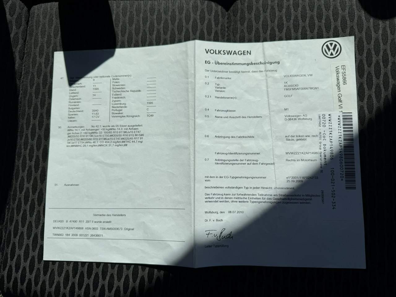 - VIN WVWZZZ1KZAP149806