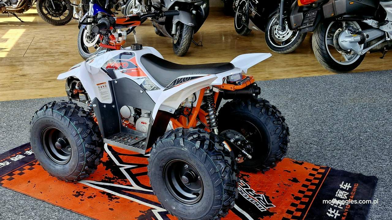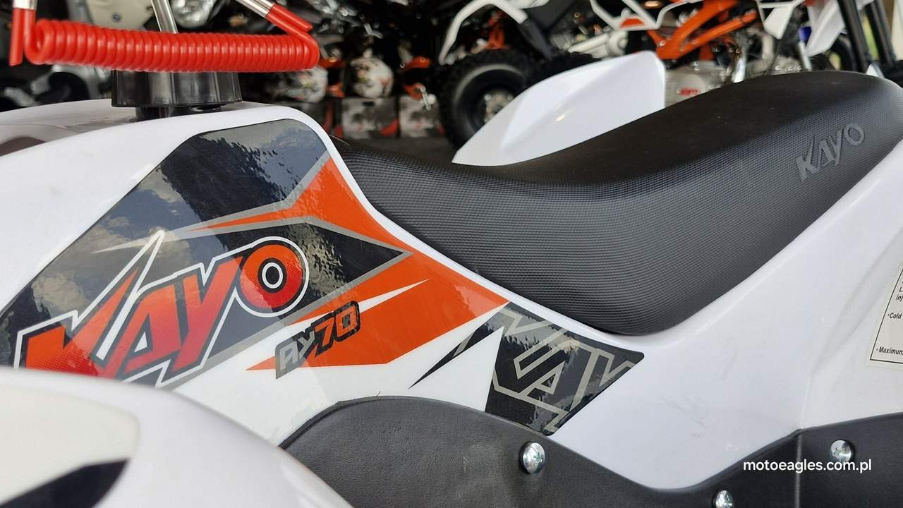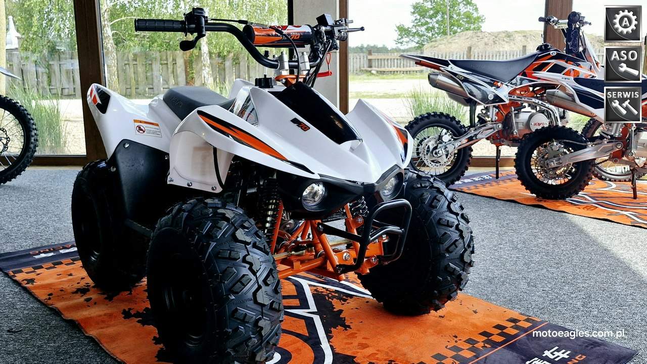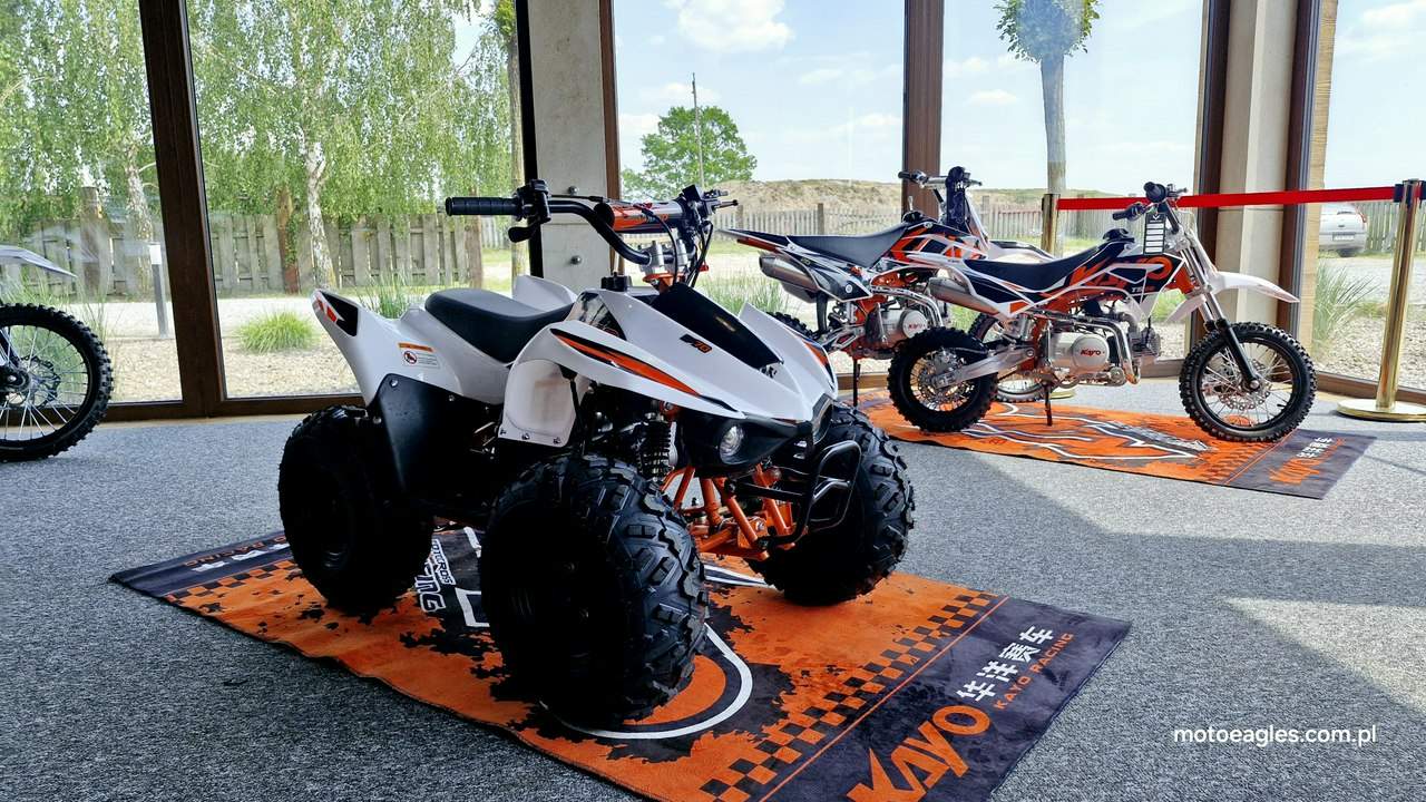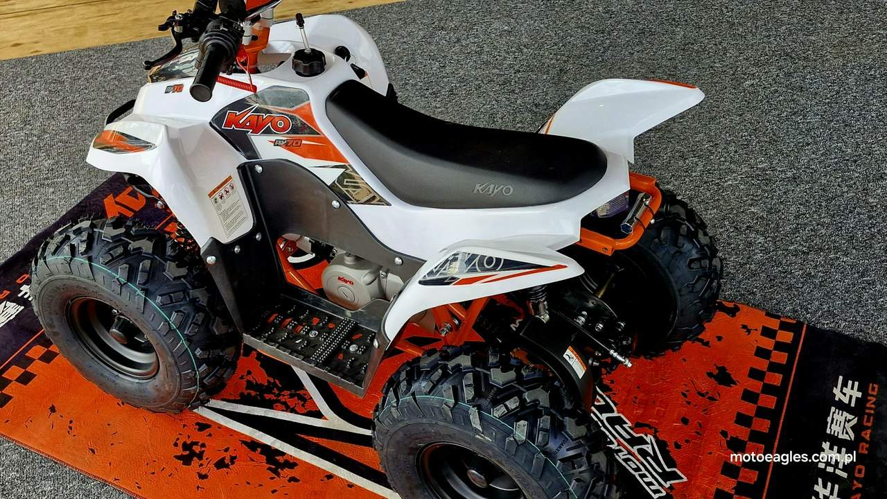 Witamy serdecznie! JESTEŚ NA STRONIE SALONU MOTOCYKLOWEGO"MOTOEAGLES" Zapraszamy do naszego autoryzowanego salonu i serwisu marki KAYO – prawdziwej oazie dla miłośników motocykli! Oto kilka powodów, dla których warto wybrać naszą ofertę: 1. **Innowacyjność** : Produkty marki KAYO to połączenie najnowszych technologii z pasją do motocykli. Oferujemy Ci dostęp do nowoczesnych rozwiązań, które zapewniają niezapomniane wrażenia z jazdy. 2. **Wysoka jakość**: Każdy motocykl i część marki KAYO to gwarancja solidności wykonania i trwałości. Dzięki temu możesz cieszyć się nie tylko świetnym designem, ale także pewnością co do bezpieczeństwa i niezawodności sprzętu. 3. **Kompleksowa obsługa** : Nasz autoryzowany salon oferuje nie tylko sprzedaż, ale także kompleksową obsługę serwisową. Nasi wykwalifikowani specjaliści zadbasz o Twój motocykl, zapewniając mu długą żywotność i bezproblemową eksploatację. Posiadamy części w zakresie eksploatacji, a także szkodowe. 4. **Bogata oferta** Bez względu na to, czy szukasz motocykla buggy czy quada, marka KAYO ma dla Ciebie idealne rozwiązanie. Nasze produkty są dopasowane do różnych stylów jazdy i oczekiwań klientów. 5. **Profesjonalne doradztwo** Nasz zespół z pasją podzieli się z Tobą swoją wiedzą i doświadczeniem, pomagając Ci wybrać najlepszy model motocykla lub akcesoriów pasujących do Twoich potrzeb i preferencji. Nie czekaj dłużej! Odwiedź nasz salon i przekonaj się, dlaczego marka KAYO to świetny wybór dla każdego motocyklisty. Czekamy na Ciebie z otwartymi drzwiami i gotowi sprostać Twoim oczekiwaniom! KAYO to marka ,która jest najlepsza jakościowo porównując oferty produktów ze wschodu, trzymając przy tym niskie ceny. PREZENTUJEMY: Quad Kayo AY70 dla najmłodszych Kayo AY70 to idealna pierwsza maszyna dla młodego adepta jazdy na quadzie. Dzięki niewielkim rozmiarom i praktycznym rozwiązaniom, takim jak automatyczna skrzynia czy regulowany rolgaz, masz pewność, że twoje dziecko bez trudu opanuje tego quada, będzie świetnie się bawić i w każdej sytuacji będzie bezpieczne. Kayo AY70 to miniquad dla początkujących dzieci napędzany czterosuwowym silnikiem o pojemności 72 cm3. Niskie siedzenie znajdujące się na wysokości 60 cm, 7-calowe koła i niewielkie gabaryty sprawiają, że Kayo AY70 to świetny wybór dla dzieci w wieku od 4 do 7 lat. Automatyczna skrzynia, regulowany rolgaz dający możliwość ograniczenia prędkości maksymalnej, automatyczna zrywka gasząca silnik oraz skuteczne hamulce to gwarancja bezpieczeństwa dla twojego dziecka w każdej sytuacji. Niewielkie koszty utrzymania, proste serwisowanie i obsługa, a także wysoka trwałość powodują, że quad Kayo AY70 to maszyna, która bez problemu posłuży przez lata. Kayo ma szerszy rozstaw kół niż tanie quady z OLX, przez co jest stabilniejszy i mniej wywrotny. Wszystkie pojazdy objęte są gwarancją producenta. Sprzedawcy pomogą w doborze niezbędnego wyposażenia motocyklisty i doradzą, jak serwisować quada KAYO (to proste i niedrogie!), a w razie potrzeby pomogą go zmontować, zabezpieczyć i przygotować do jazdy. Mini quad dla najmłodszych Kayo AY70 to doskonały wybór dla dzieci stawiających swoje pierwsze kroki w motoryzacji. Niewielkie rozmiary sprawiają, że Kayo nadaje się nawet dla dzieci w wieku 4-7 lat. Niskie siedzenie oraz niewielkie koła o średnicy 7 cali pozwolą twojemu dziecku swobodnie wsiadać i zsiadać, oraz pewnie poczuć się za kierownicą tego quada. Dzięki automatycznej, bezstopniowej skrzyni biegów, regulowanej manetce gazu pozwalającej ograniczyć moc Kayo, a także zrywce bezpieczeństwa, która zgasi quada w sytuacji awaryjnej, możesz być pewien, że twoja pociecha będzie bezpieczna w każdej sytuacji. Optymalna szerokość kół i zawieszeń sprawia, że Kayo AY70 to stabilny czterokołowiec dla początkujących, nad którym zapanować mogą nawet czterolatki. Dzięki elektrycznemu rozrusznikowi nie musisz martwić się o problemy z odpaleniem, jeśli przez przypadek silnik quada zgaśnie. Jak duży jest Kayo AY70? Niewielka masa wynosząca 72 kg i kompaktowe rozmiary (długość 120, wysokość 82 i szerokość 80 cm) powodują, że Kayo zmieści się do bagażnika większego kombi, dzięki czemu możesz świetnie spędzić czas ze swoim dzieckiem także podczas wycieczki poza miasto. Jak mocny jest Kayo AY70? Zwykle przy zakupie tego typu czterokołowca zastanawiasz się, czy nie jest to pojazd zbyt mocny i zbyt szybki dla twojego dziecka. Kayo AY70 jest napędzany jednocylindrowym, chłodzonym powietrzem silnikiem czterosuwowym o pojemności 72 cm3. To wartość optymalna do tego, by radził sobie z przeszkodami terenowymi i dawał ogromną frajdę z jazdy, bez obawy o ryzyko zbyt szybkiej jazdy. Na dodatek, jeśli twoje dziecko nie miało wcześniej doświadczenia z tego typu pojazdami, możesz skorzystać z regulacji manetki gazu, dzięki której ograniczysz prędkość maksymalną, dając czas dziecku na oswojenie się z fizyką jazdy i bezstresową naukę prowadzenia quada. Jakie są koszty utrzymania Kayo AY70? Prosta i sprawdzona konstrukcja silnika sprawia, że jest trwały i bezawaryjny, a wszelkie czynności serwisowe możesz wykonać we własnym zakresie. Jakość wykonania jest solidna, ceny części zamiennych są niskie, a niewielkie zużycie paliwa sprawia, że zbiornik o pojemności 2,1 litra wystarczy, aby dziecko świetnie się bawiło przez długi czas. To sprawia, że nie musisz się martwić o wysokie koszty utrzymania i serwisowania. Zapraszamy do salonu znajdującego się w Bicz 9A , 62-571 Stare Miasto Numer oferty: MKM45C9F i00586075358i