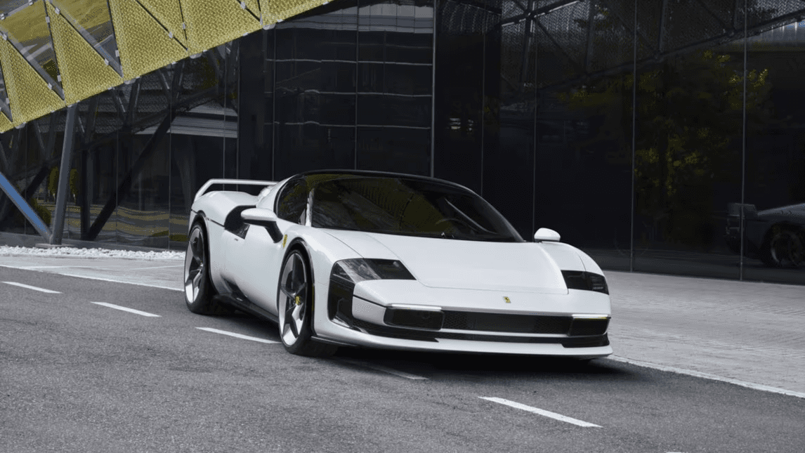 Zamiast tradycyjnej czerwieni, samochód pomalowano w unikalny biały odcień stworzony specjalnie dla tego projektu, podobnie jak dedykowane felgi. To subtelne, ale wyraziste odejście od klasyki ma symbolizować połączenie dziedzictwa i nowoczesności.