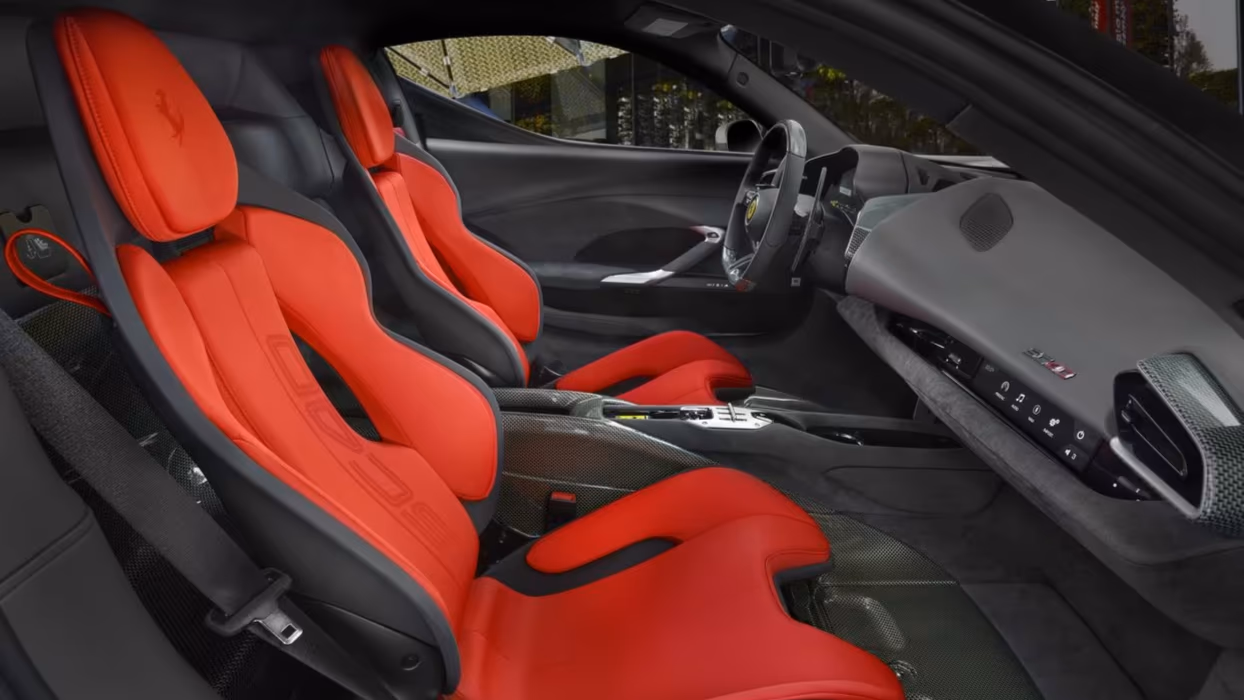 Wnętrze w dużej mierze zachowuje architekturę modelu 296 GTB, jednak zastosowano tu elementy z karbonu i kewlaru, przypominające o wyścigowym duchu F40. Tych materiałów użyto m.in. na kierownicy, desce rozdzielczej oraz w strefie za fotelami.