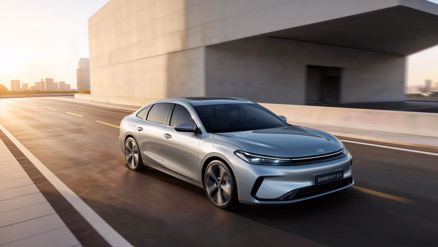 Równolegle debiutuje wersja w pełni elektryczna. Geely Galaxy A7 EV napędzany jest silnikiem o mocy 218 KM i przyspiesza do 100 km/h w 7,4 sekundy. Energia magazynowana jest w akumulatorze o pojemności 58 kWh, który pozwala przejechać do 550 kilometrów na jednym ładowaniu.
