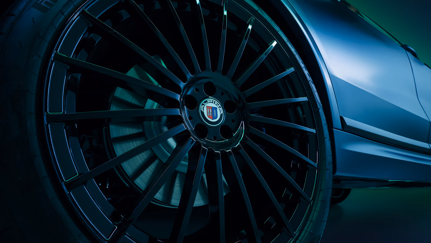 Wnętrze przygotowano w czteroosobowej konfiguracji. Kabinę wykończono skórą w połączeniu czerni i brązu, a w środku pojawią się hafty Alpina oraz Manufaktur, a także numerowana tabliczka z oznaczeniem egzemplarza. Na liście wyposażenia znalazł się również system audio Bowers & Wilkins. Do każdego samochodu producent dołączy zestaw ręcznie wykonanych toreb podróżnych dopasowanych stylistycznie do wnętrza.