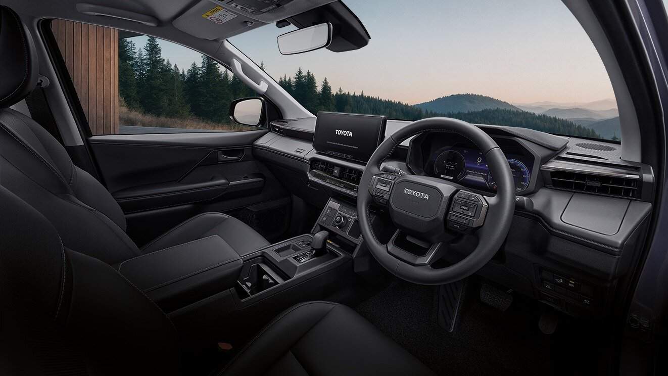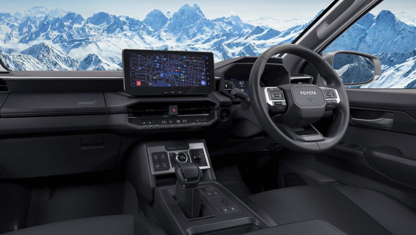 Wnętrze zaprojektowano całkowicie od podstaw. Kabina ma wyraźne, geometryczne linie, duży centralny ekran, klasyczny selektor przekładni oraz sporo fizycznych przycisków, w tym pokrętło wyboru trybu jazdy. W wariantach spalinowych widoczny jest dodatkowy element do obsługi systemu napędu 4x4.